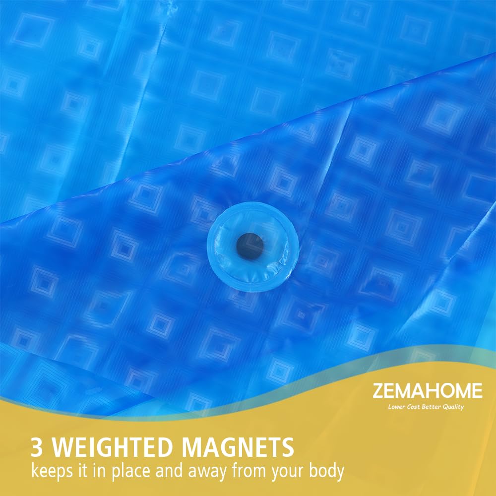 Zemahomeeva 3D Blue Geometric Plastic Shower Curtain Liner - Premium Light Weight 72' X 72' Blue Bathroom Shower Showroom Curtain Liner With Rustproof Metal Gromments And Weighted Magnet
