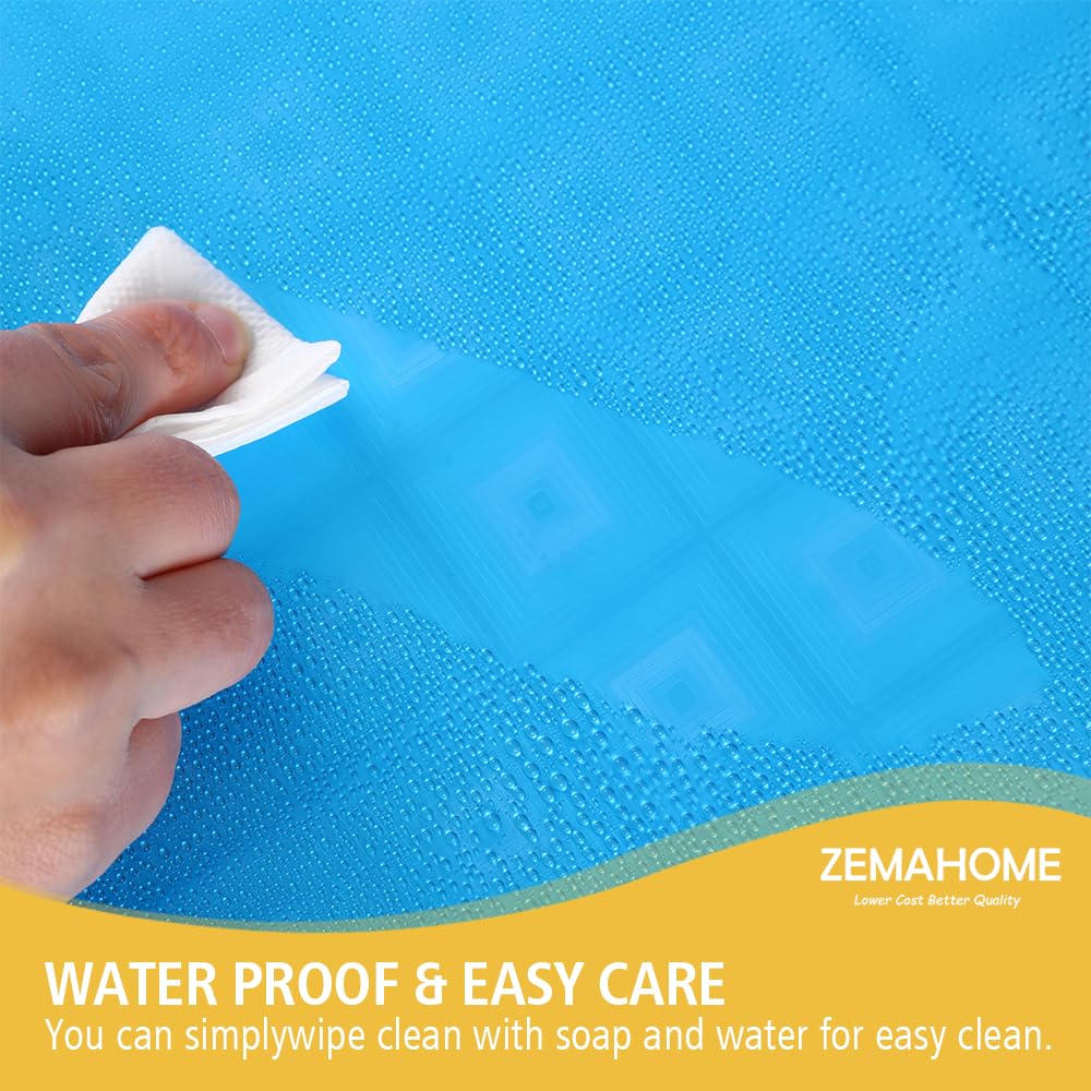 Q: Is the shower curtain liner easy to clean?A: Yes, the ZEMAHOMEEVA Shower Curtain Liner is 100% water-repellant and can be easily wiped clean with soap and water for hassle-free maintenance.