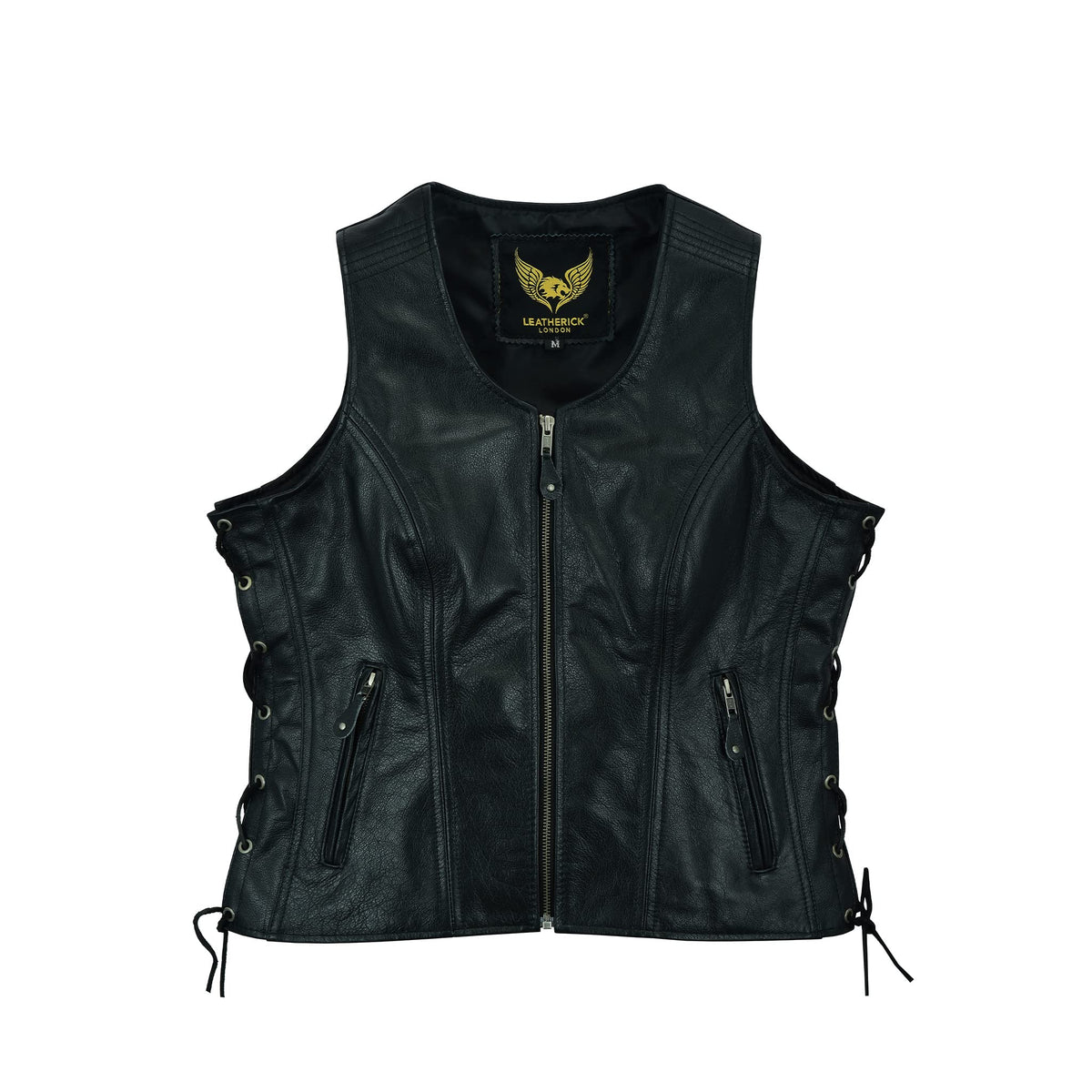 Leatherick Women Top Grain Genuine Buffalo Black Ladies Leather Vests For Motorcycle Bikers (As1, Alpha, 3X_L, Regular, Regular,