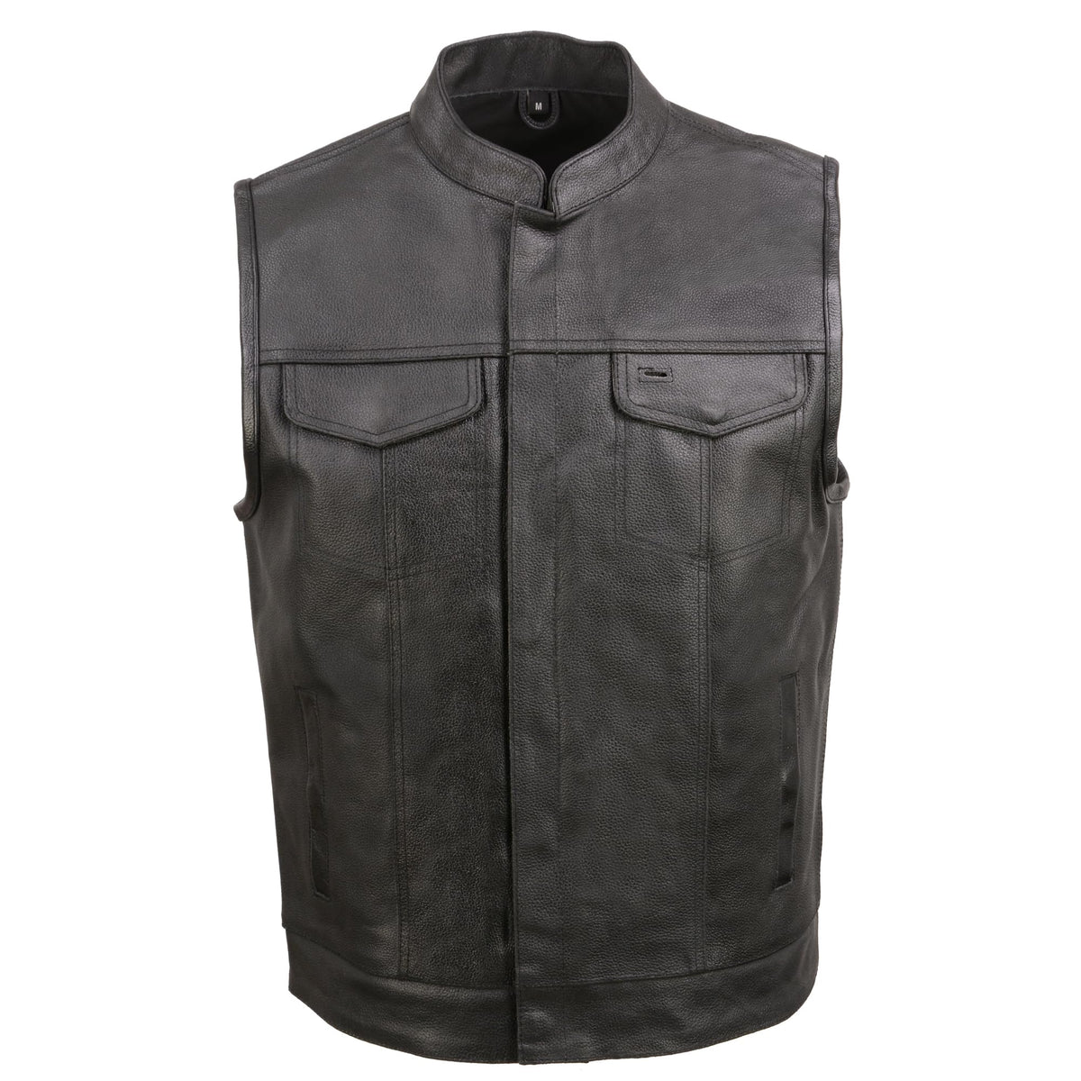 Men'S Leather Motorcycle Vest Zipper & Snap Closure W/ 2 Inside Gun Pockets & Single Panel Back (6X - Big)