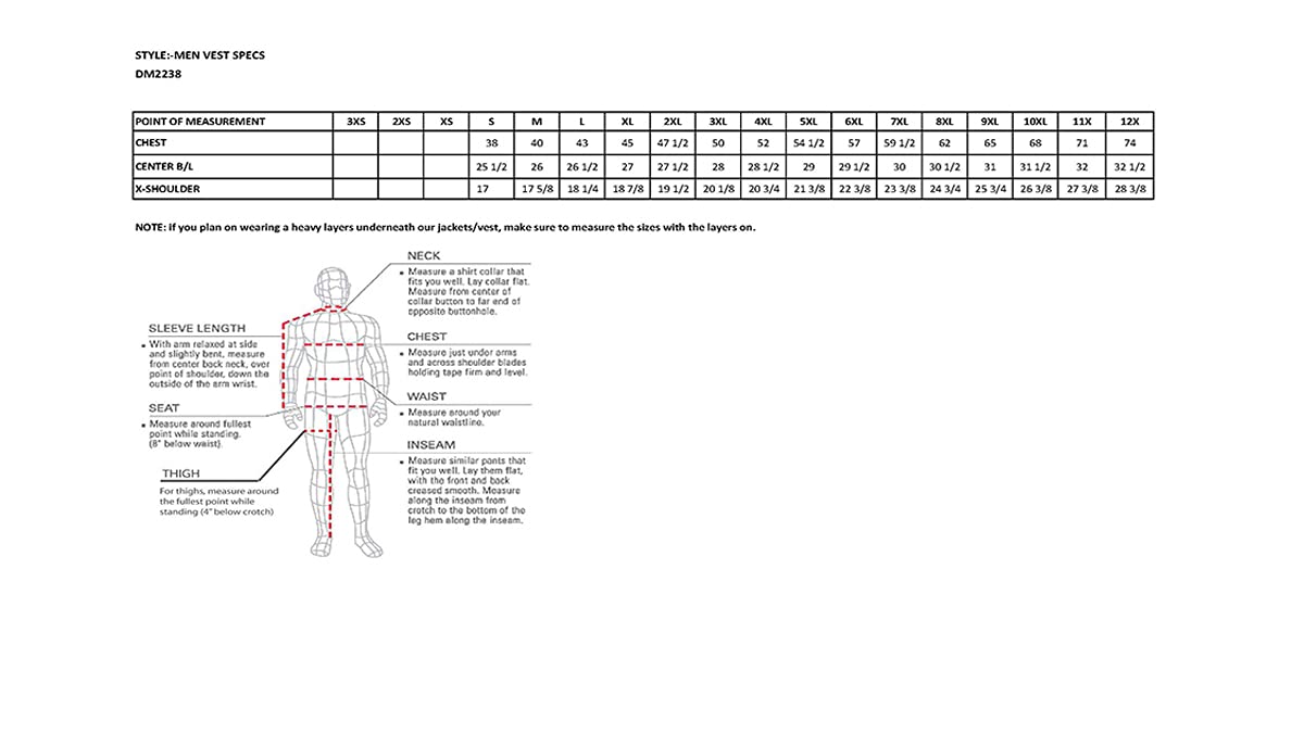 Q: What sizes are available for the Milwaukee Leather DM2238 vest?A: The Milwaukee Leather DM2238 vest is available in multiple sizes, including Large. It is designed to fit men of all sizes comfortably.