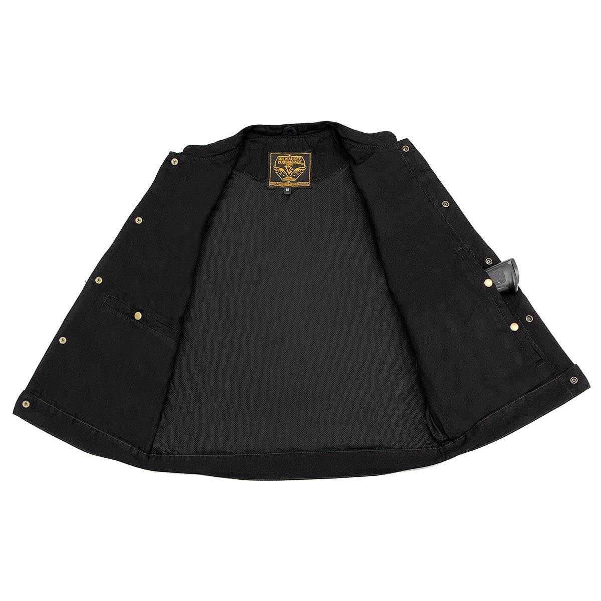 Milwaukee Leather Dm2238 Men'S Black Denim Snap Front Club Style Vestfeatures Made Of 14.5Oz 100% Cotton Denim Material Conceal And Carry Your Piece With Dual Inside Left And Right Storage Pockets (Can Be Used As Regular Large Storage Pockets If You Dont Carry) Snap Front Closure With Open Collar> 2 Chest Pockets 2 Lower Hand Pockets Single Panel Back Ideal For Club Patches Milwaukee Leather: Made For Riders, Built To Last