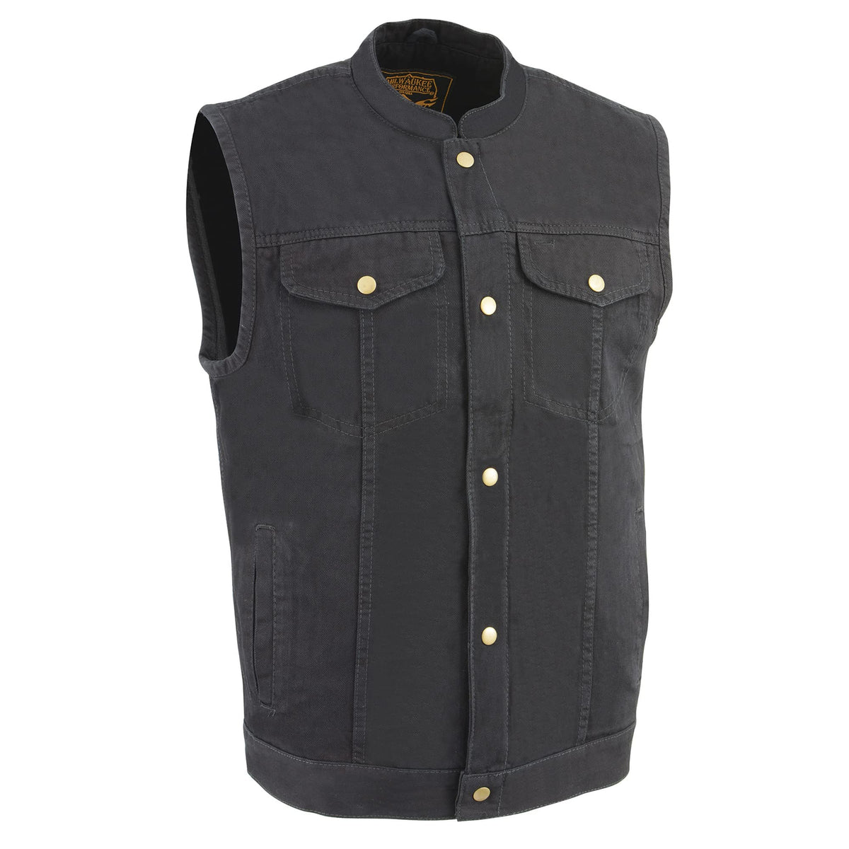 Milwaukee Leather Men'S Soa Anarchy Black Denim Textile Motorcycle Vest - Gun Pocket Inside (7X-Large)