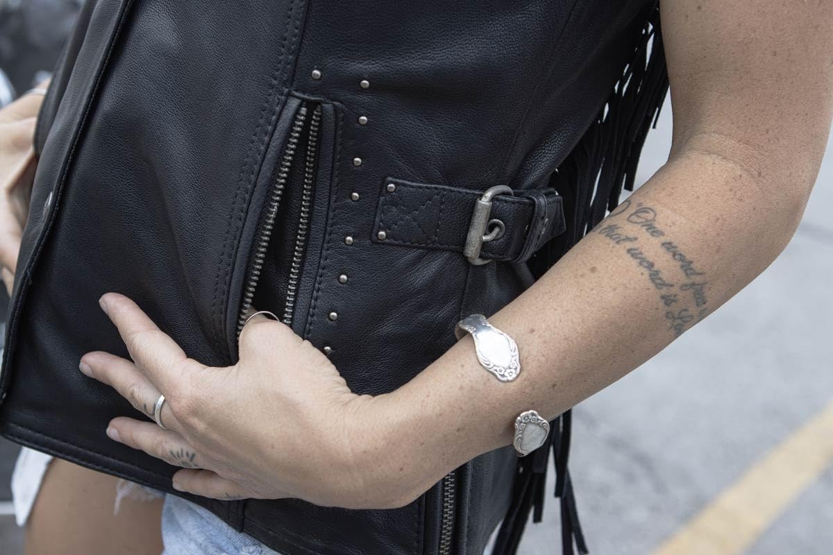 Milwaukee Leather MLL4565 Women's Black Fringed Leather Rivet Detail Side Buckle and Zipper Motorcycle Rider Vest - Medium