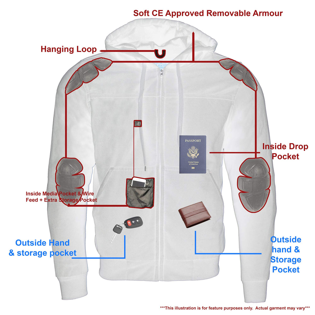Milwaukee Leather Mpm1788 Men'S Black Ce Approved Armored Riding Hoodie Sweater With Aramid By Dupont Fibers - 3X-Large