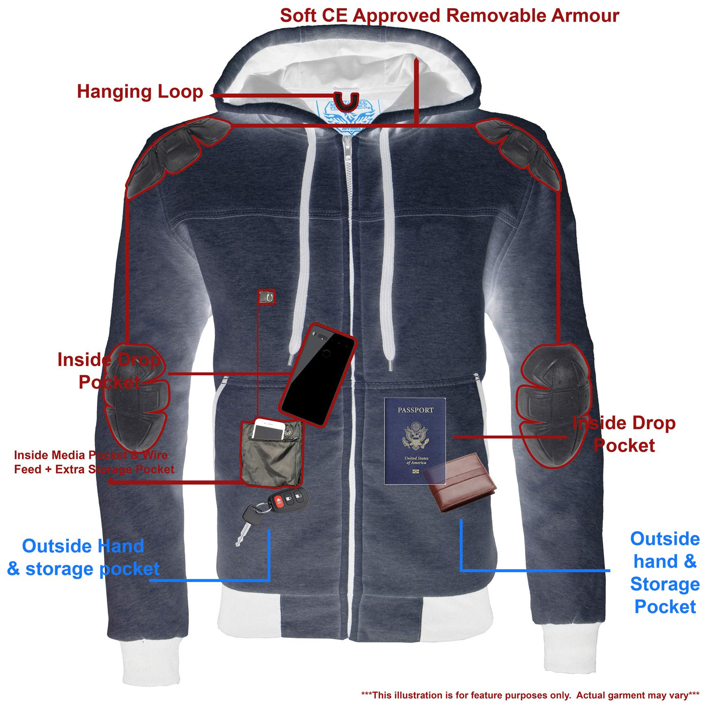 Milwaukee Leather Mpm1788 Men'S Silver Ce Approved Armored Riding Hoodie Sweater With Aramid By Dupont Fibers - 4X-Large