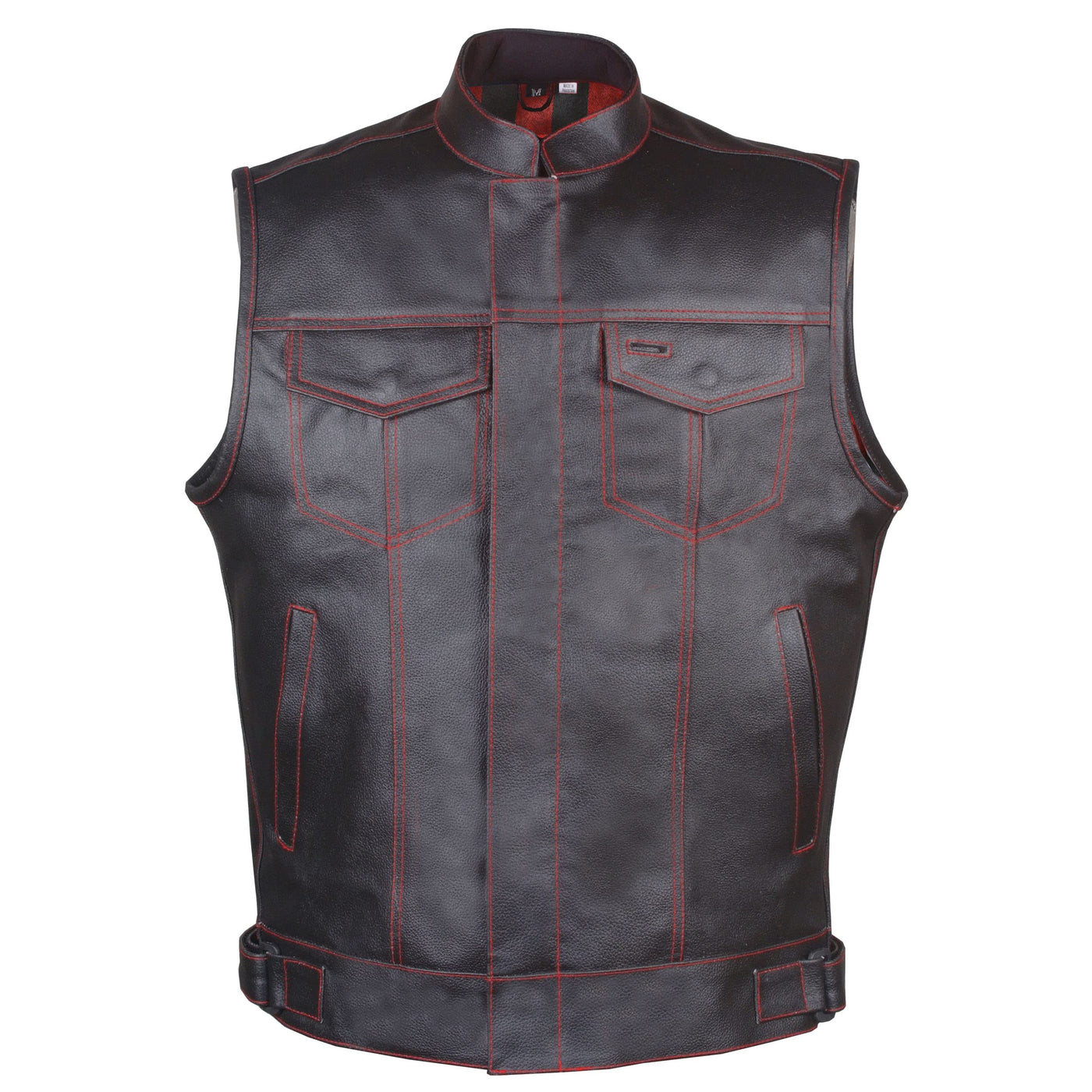 Soa Men 'S Premium Leather Motorcycle Vest With Biker Club Concealed Carry Gun Pockets W/Armor Flannel Red 3Xl