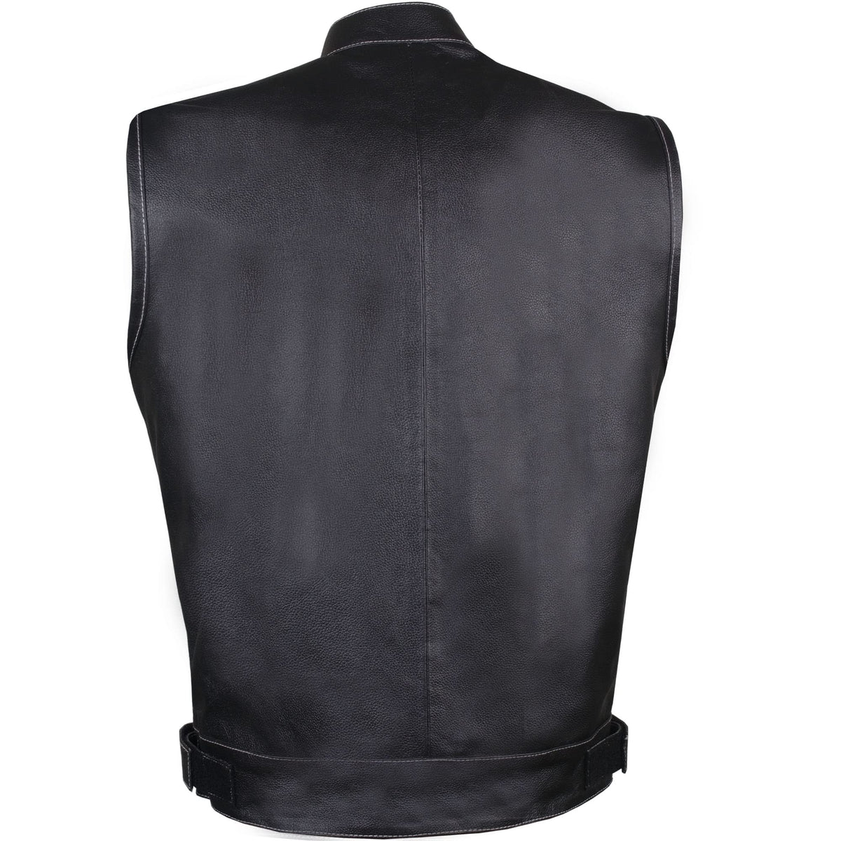 Upgrade your riding gear with our Men 's Premium Leather Motorcycle Club Vest-a perfect blend of style, functionality, and protection. Made cowhide leather, this vest is built to withstand the rigors of the open road while providing a classic biker aesthetic. The dual concealed carry pockets allow you to securely and discreetly carry your firearm, giving you peace of mind wherever you go. The vest features a removable back armor insert, offering an extra layer of protection that you can remove when not needed. With large front and back panels, you have ample space to showcase your club affiliation or personalize your vest with custom patches and embroidery. The dual closure system-combining snap buttons with a metal zipper-ensures a snug and comfortable fit, adapting to your movements as you ride. Designed with practicality in mind, the vest includes multiple pockets for storing your essentials. The soft, non-allergenic polyester inner liner adds an extra touch of comfort, making this vest not just a piece of gear, but a staple in your everyday riding apparel.
