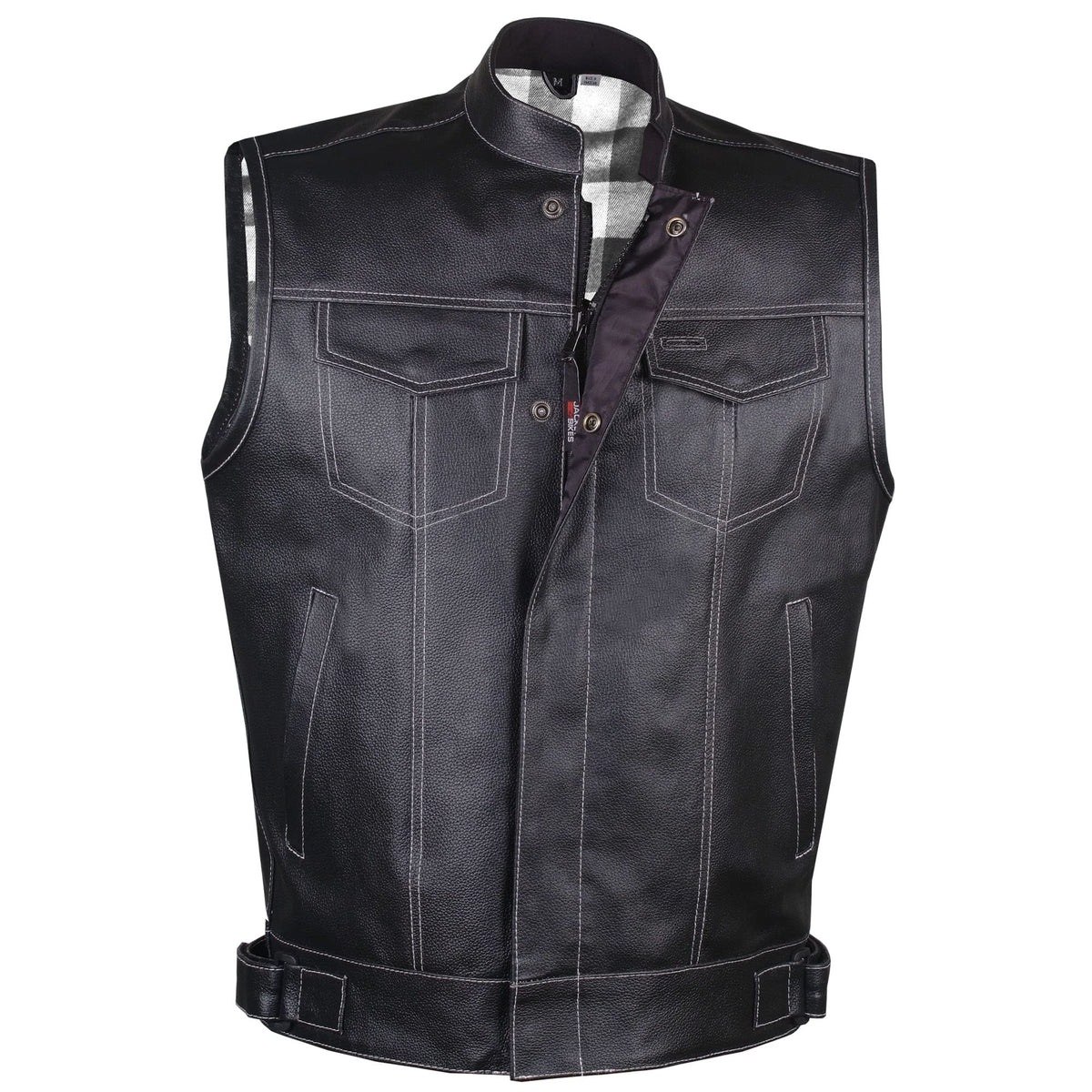 Soa Men 'S Premium Leather Motorcycle Vest With Biker Club Concealed Carry Gun Pockets W/Armor Flannel White 3Xl