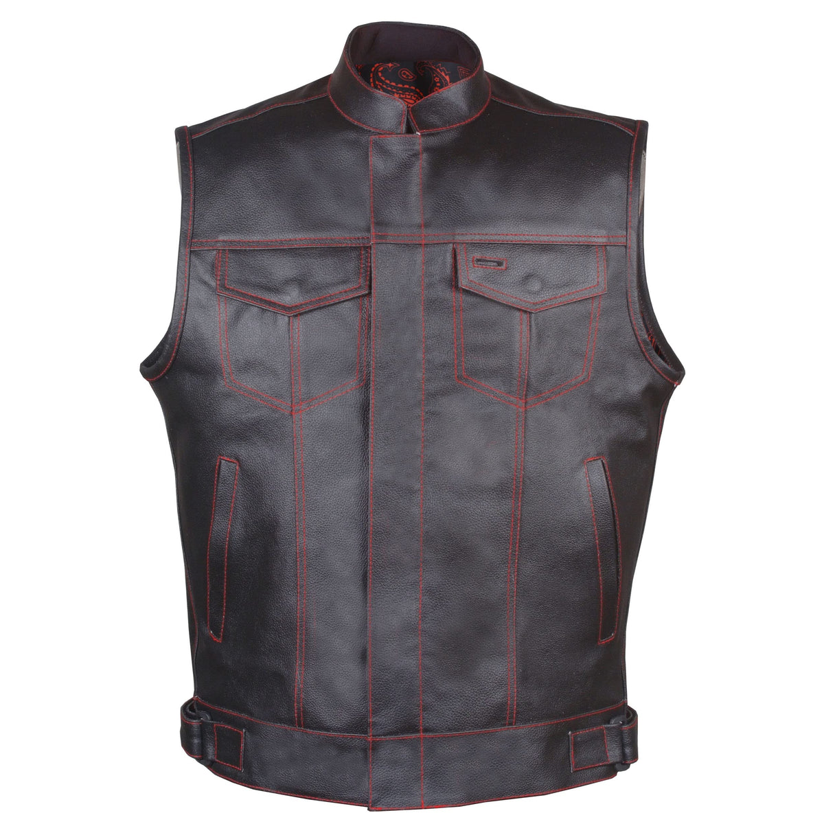 Soa Men 'S Premium Leather Motorcycle Vest With Biker Club Concealed Carry Gun Pockets W/Armor Paisley Red S