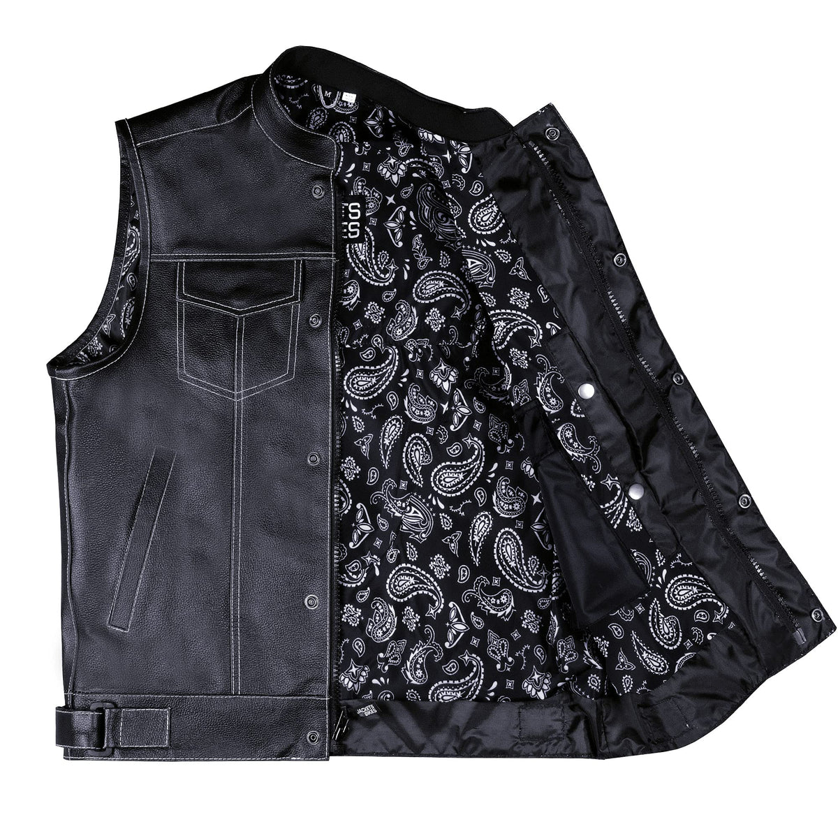 Soa Men 'S Premium Leather Motorcycle Vest With Biker Club Concealed Carry Gun Pockets W/Armor Paisley White Xxl