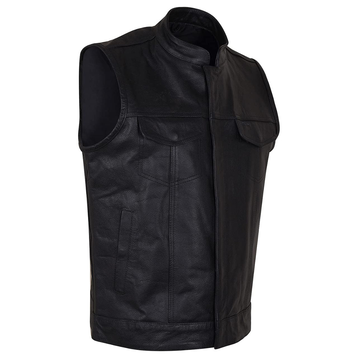 Soa Men'S Leather Vest Anarchy Motorcycle Biker Club Concealed Carry