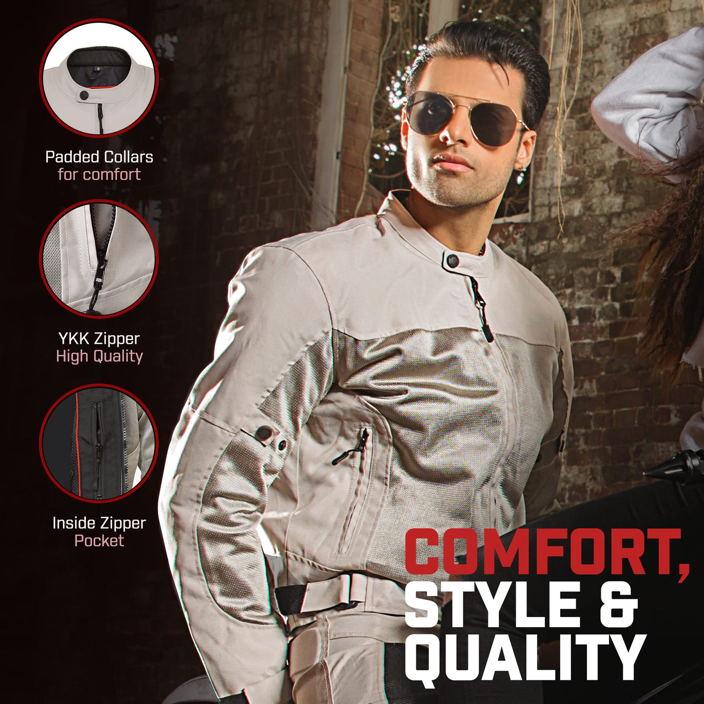 Wicked Stock Mesh Motorcycle Jacket With Armor - Breathable Biker Jacket Men With Ce Level 1 Motorcycle Armor - Lightweight Summer Mens Motorcycle Jackets With Adjustable Cuffs, Biceps & Waist (M)