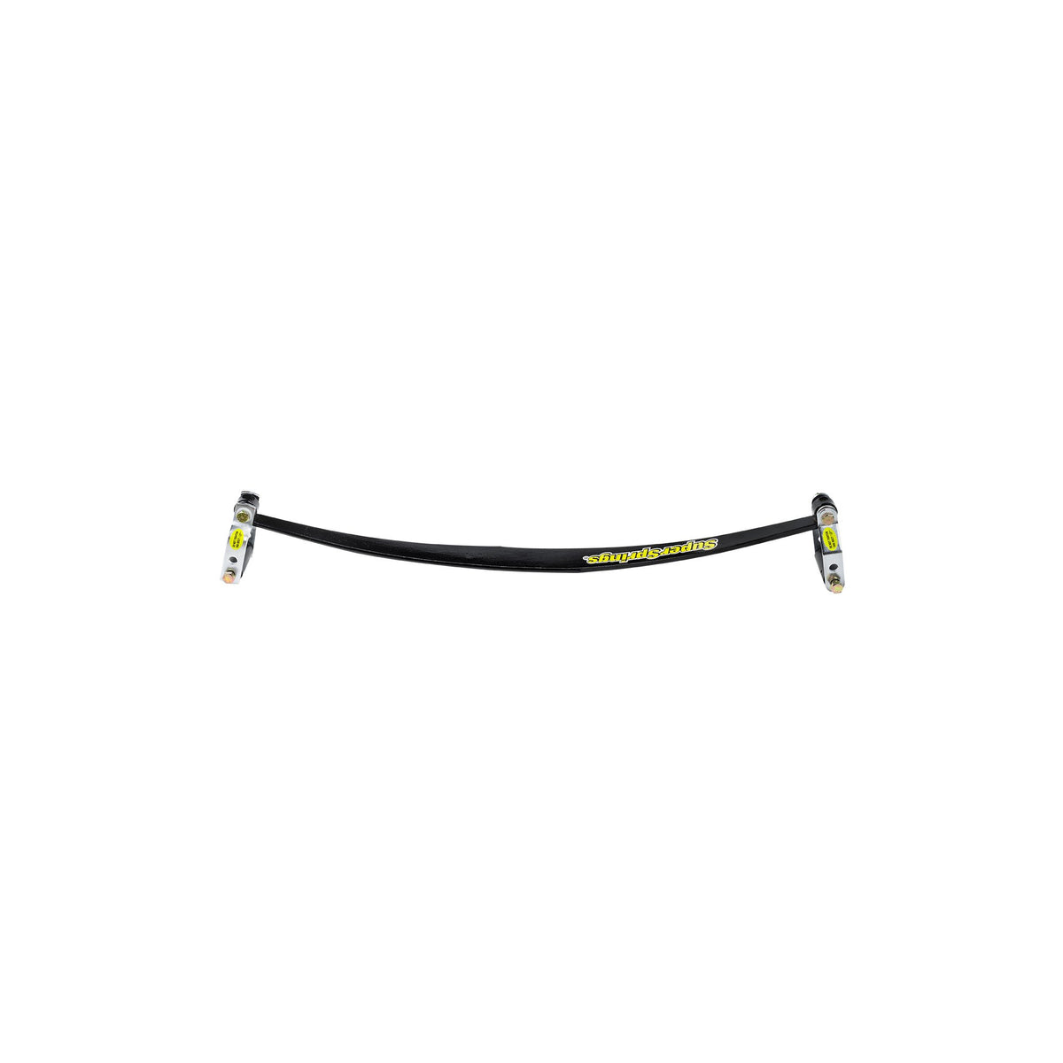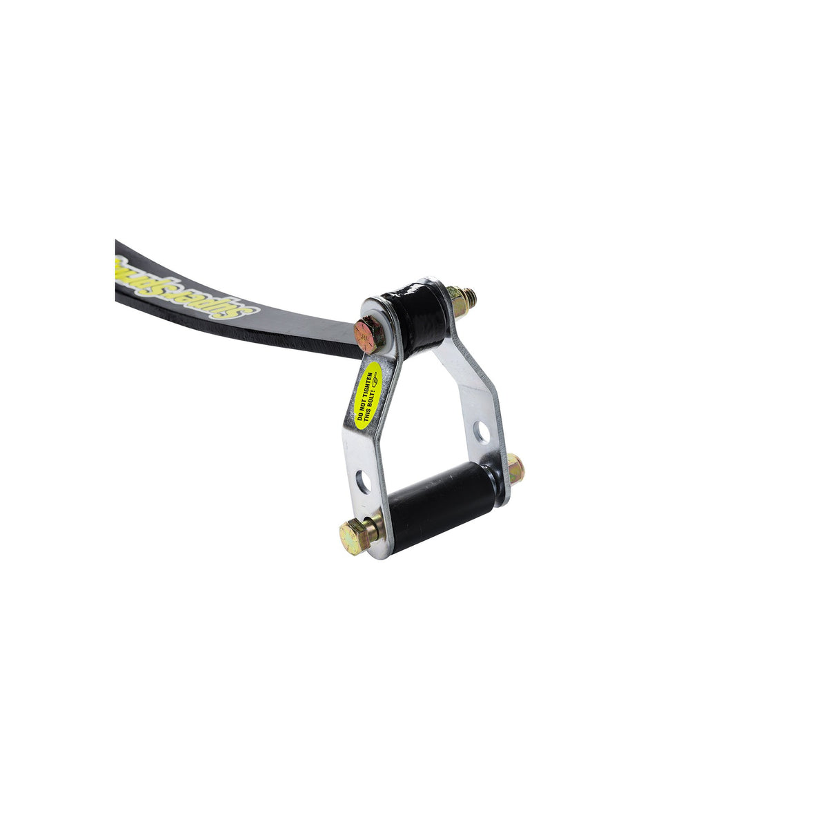 Q: What are SuperSprings and how do they work?A: SuperSprings are a patented self-adjusting suspension stabilizing system designed for vehicles with rear leaf springs. They attach to your vehicle's existing leaf spring pack and automatically adjust during suspension travel to enhance load support, reduce body roll, and improve driver control without compromising ride quality.