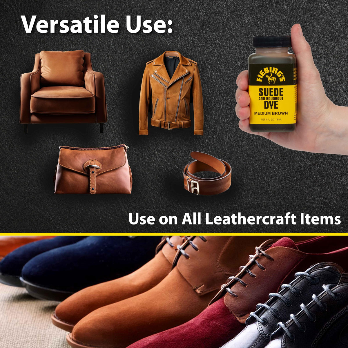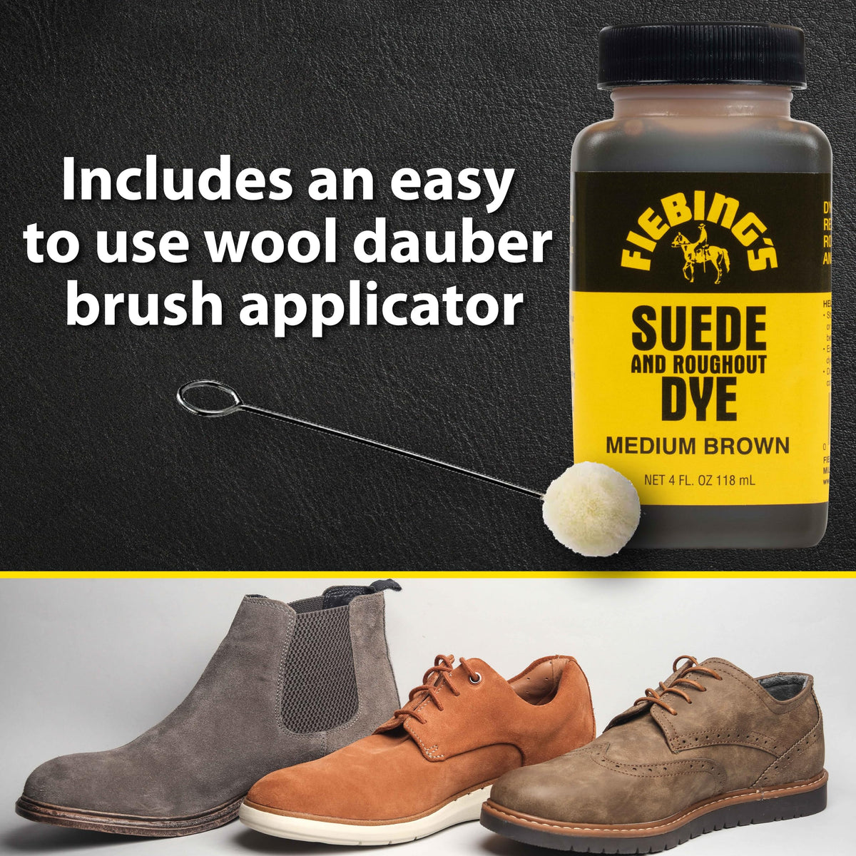Fiebing'S Medium Brown Suede Dye (4 Oz) - Recolor, Brighten & Restore Suede & Roughout Leather Shoes, Furniture, Purse - Include