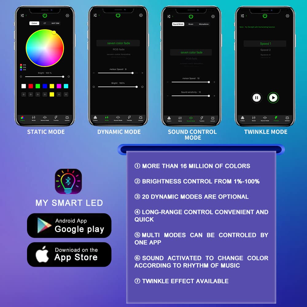 Q: How do I control the lights in the ATOKEE Starlight Headliner Kit?A: You can control the lights via an included 28-key remote controller or through the 'My Smart LED' app, which connects via Bluetooth. Both options allow you to adjust colors, brightness, and dynamic effects easily.