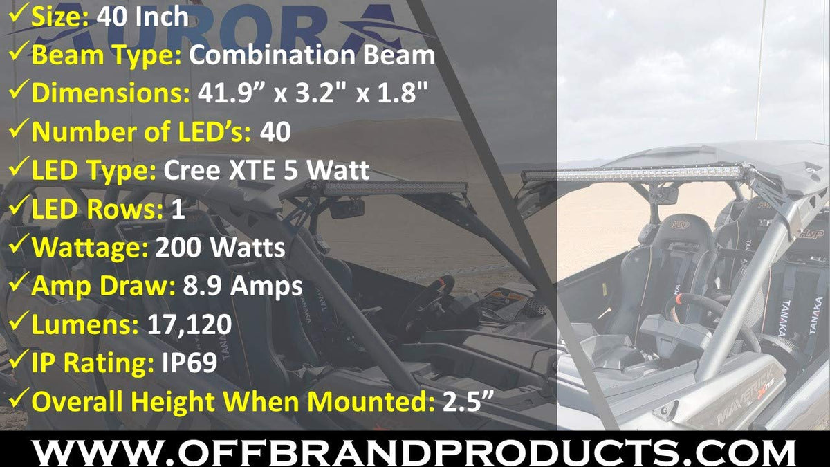Aurora - 40 Inch Off Road Led Light Bar - Single Row 17,120 Lumens - 200 Watts
