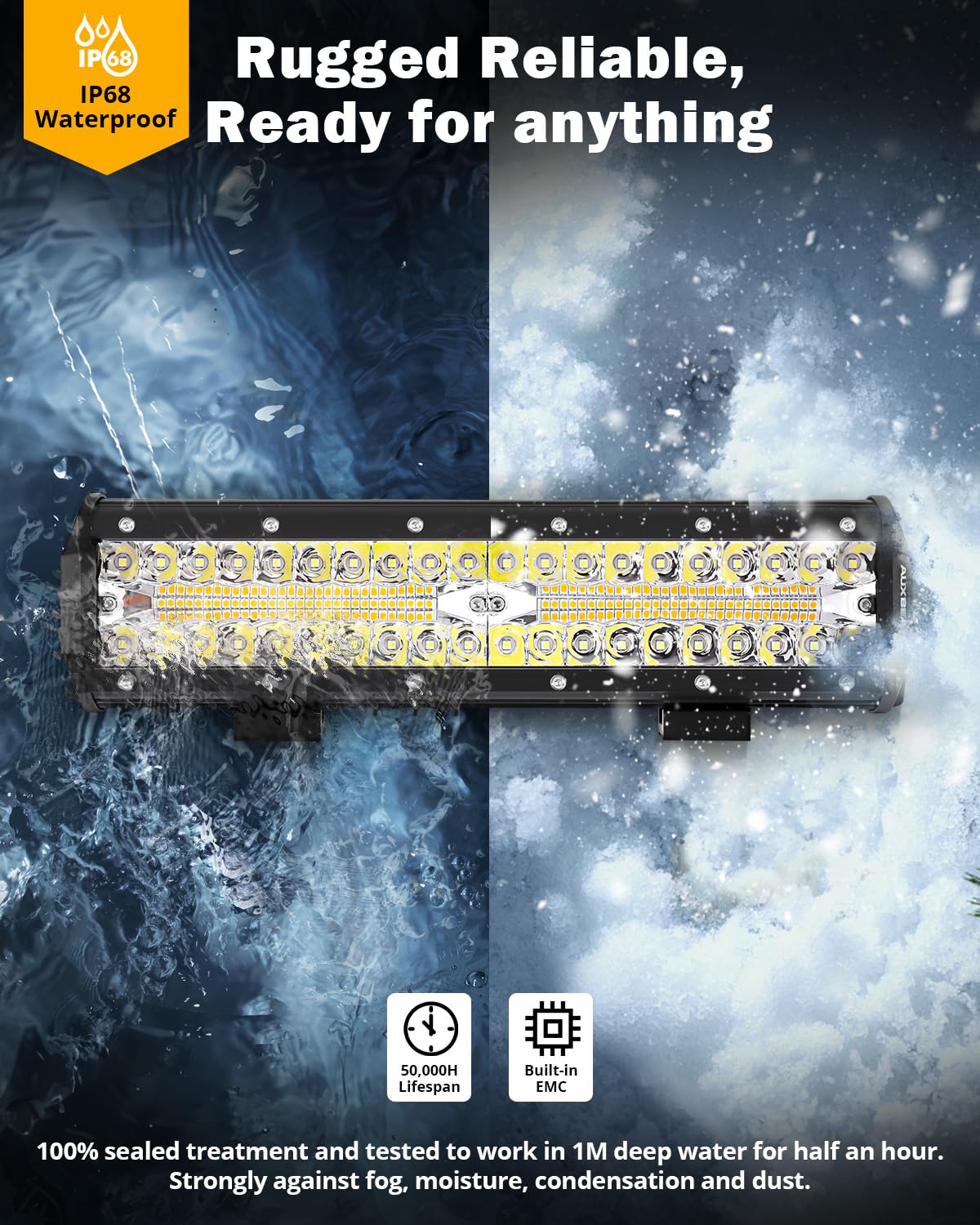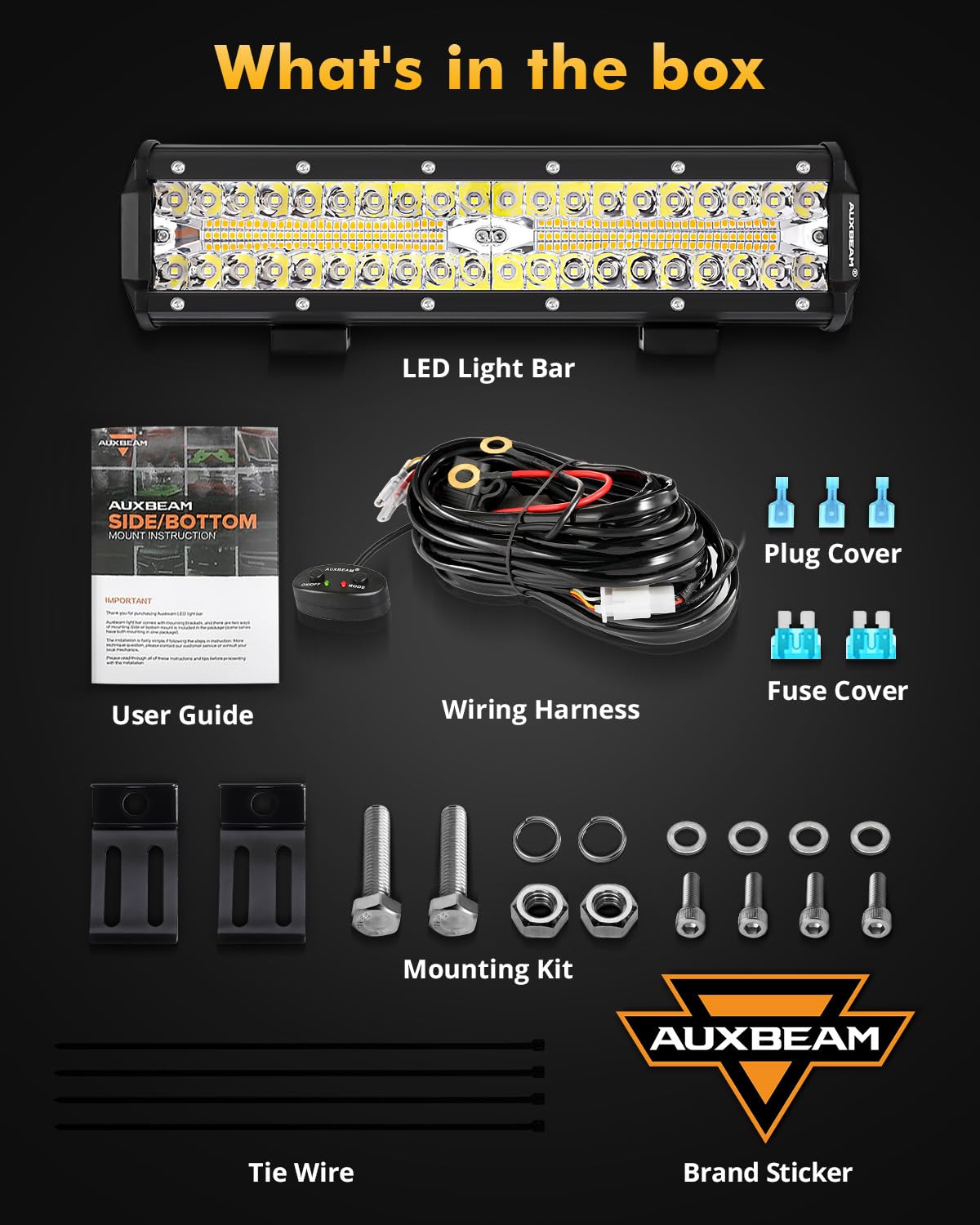 Auxbeam 12 Inch LED Light Bar 300W Amber White Strobe Light 6 Modes Dual Color Amber Offroad Fog Light Spot Flood Combo for Trucks Car ATV UTV Jeep