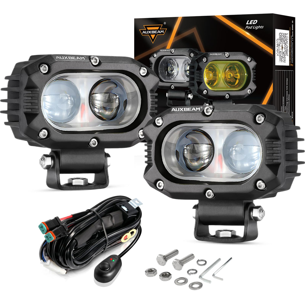 Q: Can I use the Auxbeam Pod Lights in harsh weather conditions?A: Yes, the Auxbeam 4 Inch LED Pod Lights are designed to withstand harsh environments and weather conditions, making them suitable for use in rain, snow, and other challenging conditions.