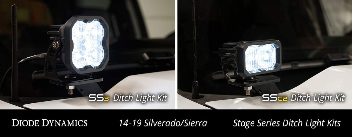 Features Bolt-On Fitment Compatible With Gmc Sierra 1500 2014-2019. Allows You To Mount Two Stage Series Led Pods Above The Hood. Utilizes Existing Mounting Points And Hardware For A Simple Installation. Thick-Gauge Stainless Steel Construction. Low-Profile Design. Overview Perfect Fitment. The Stage Series Backlit Ditch Light Kit Compatible With Gmc Sierra 1500 2014-2019 Allows You To Easily Mount Two Ss3 Or Ssc2 Backlit Pods Above The Hood. These Application-Specific Brackets Were Cad-Designed To Install Using Factory Mounting Points. No Cutting Or Drilling Required! This Kit Features A Low Profile Design While Minimizing Glare, And Will Not Interfere With Raising Or Lowering The Hood. Backlight Functionality. Both The Ss3 And Ssc2 Pods Included In Our Stage Series Ditch Light Kits Feature A Brilliant Amber Backlight. This Integrated Backlight Gives You An Additional Accent Light, Along With The Main Beam. The Backlight Fully Illuminates The Tir Optic, Providing A More Unique And Modern Look Than The Small Indicator Leds Found In Other Products. To Power The Backlight, Use The Included Harness To Tap Your Desired Vehicle Function. Built To Last. The Brackets In This Kit Are Constructed Out Of Thick-Gauge Stainless Steel. Unlike Other Options Made Out Of Mild Steel, These Brackets Are Full Stainless Steel And Won'T Corrode Over Time. With Their Thick-Gauge Construction, You Also Won'T Experience Any Vibration Or Bouncing While Driving. Focused. Optics Like Reflectors Or Simple Lenses Lose Light Internally And To Glare. However, The Custom-Engineered Tir Optic In The Ss3 And Ssc2 Collects All Of The Light From The Led, And Directs It Only Where You Need It, Drastically Reducing Glare And Improving Total Efficiency.