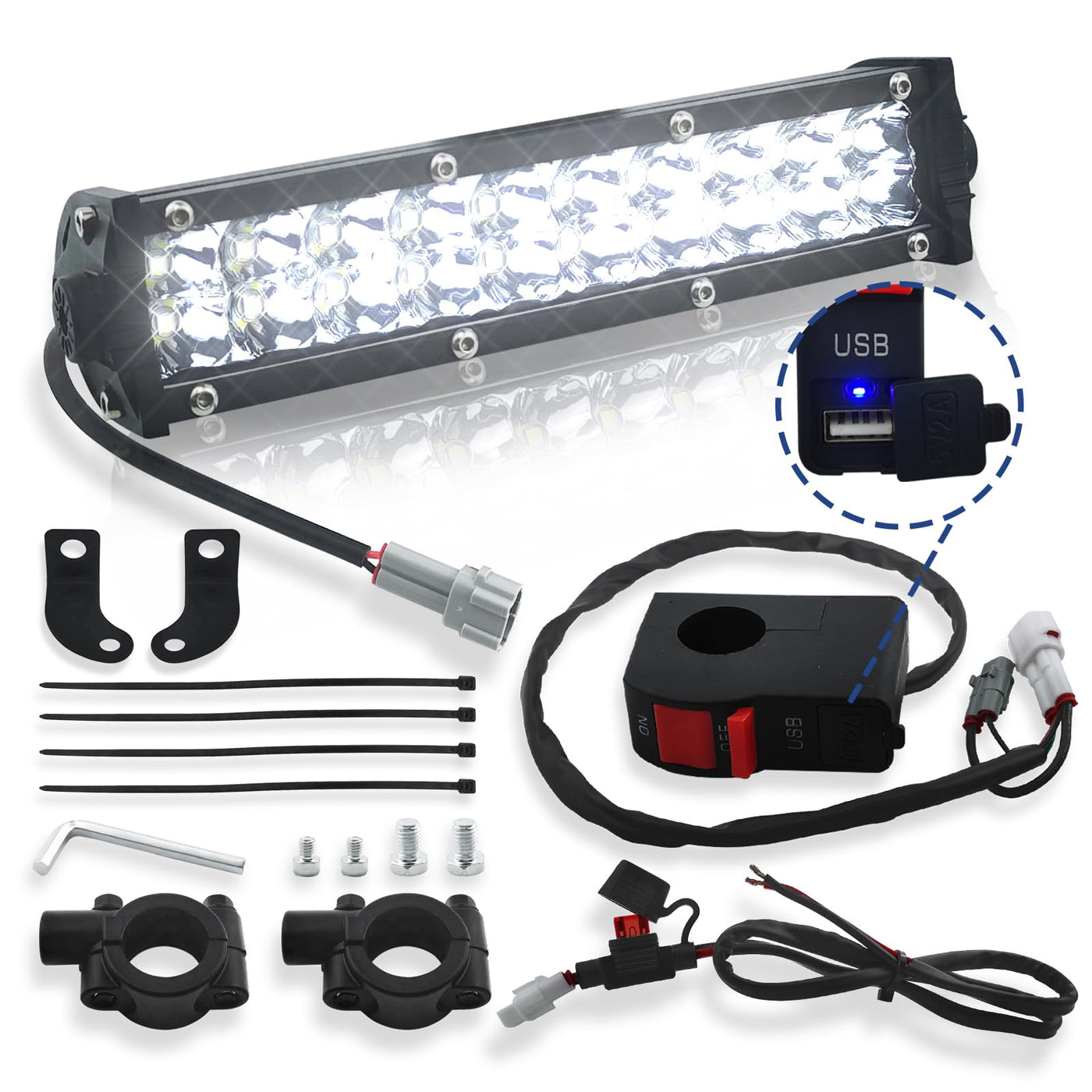 Mlwrid Dirt Bike Light Bar Kit With Usb Socket Compatible For Honda Crf110 Crf250R Crf450R,For Kawasaki Klx110 Kx250F Kx450F,For Yamaha Ttr110 Yz125,For Suzuki Rm85 & Universal Fit Most 7/8”Handlebars
