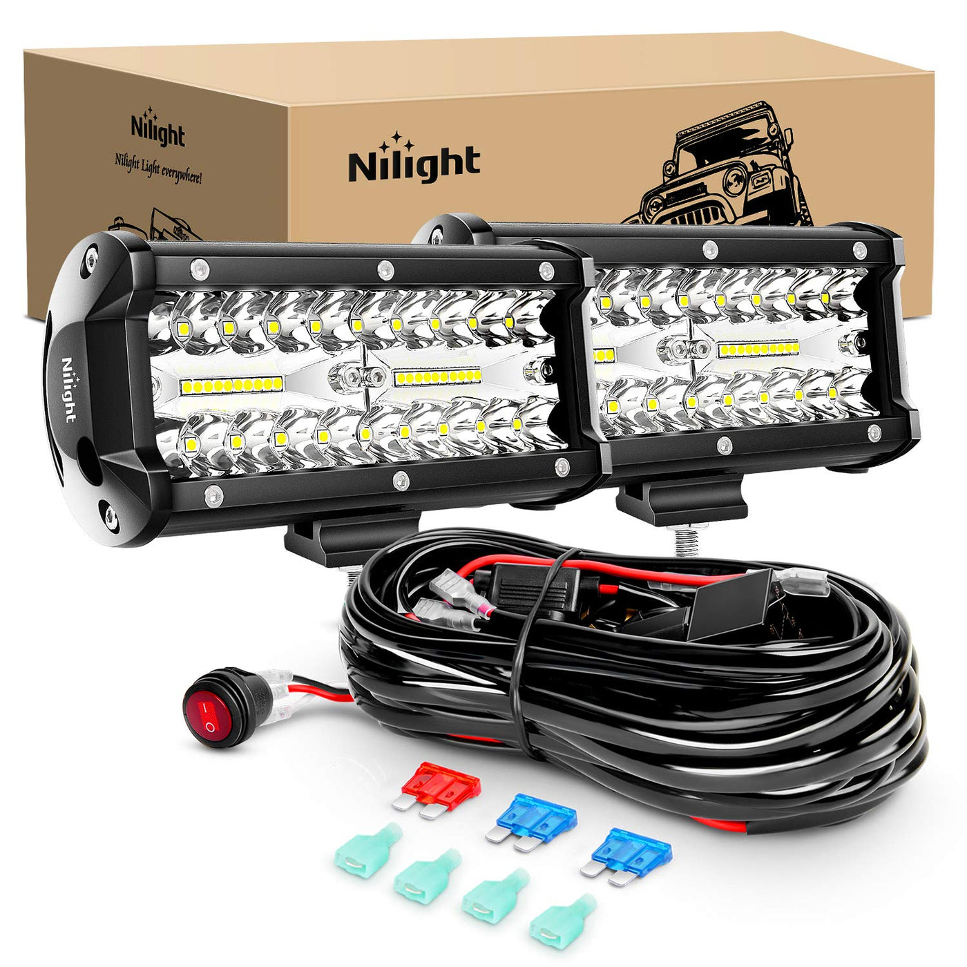 Nilight ZH303 2PCS 6.5 Inch 120W Spot & Flood Combo Driving 16AWG Wiring Harness for Led Work Light Triple Rows Off-Road Truck Car ATV SUV, 2 Years Warranty, White