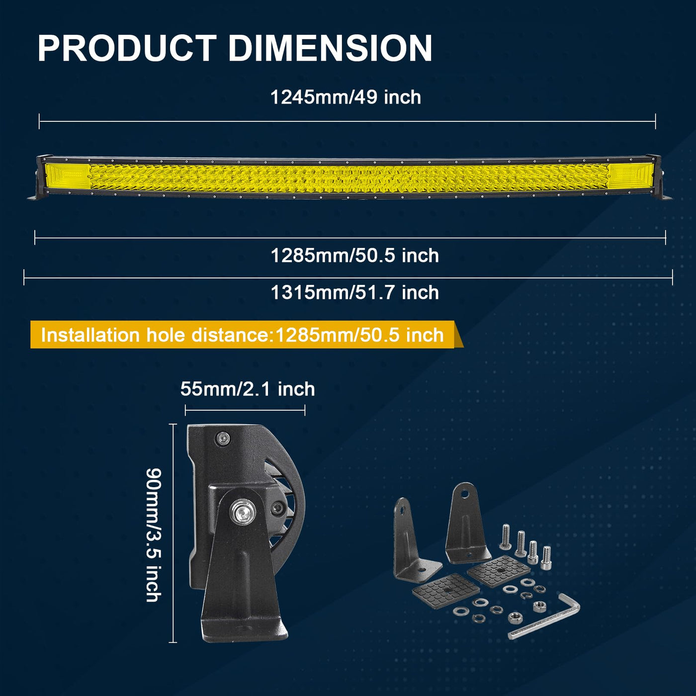 Q: What is the brightness of the RIGIDON 50 Inch LED Light Bar?A: The RIGIDON 50 Inch LED Light Bar emits an impressive 64800 lumens, providing super bright amber light for enhanced visibility and safety during nighttime driving or off-road adventures.