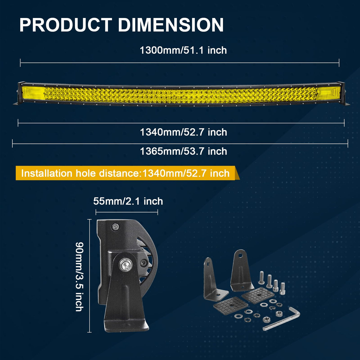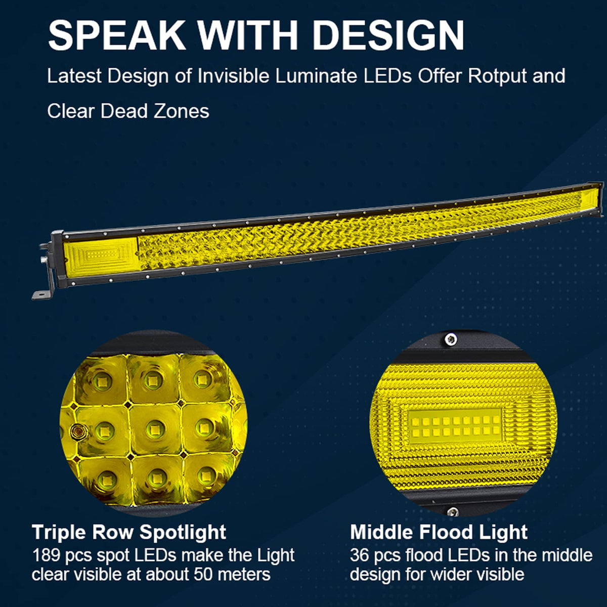 Rigidon 52 Inch 675W Curved Amber Led Light Bar, Triple Row Flood Spot Combo 67500Lm Light Bar Waterproof Driving Boat Offroad Led Work Light For Atv Utv Truck Roof Bumper