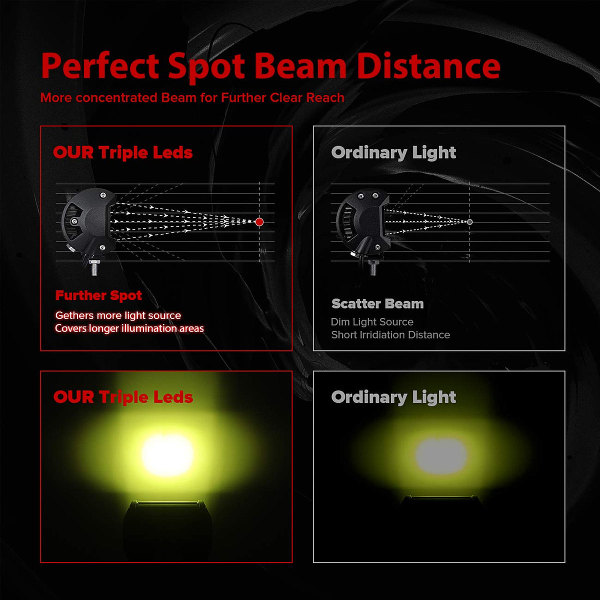 Yellow Fog Lights, Chelhead 2 Pcs 4 Inch 36W Led Light Bars 3456Lm Driving Fog Pods Triple Row Off Road Lights Waterproof Spot Beam Cube Lights Compatible With Pickup Trucks Jeep Atv Utv Suv Boat