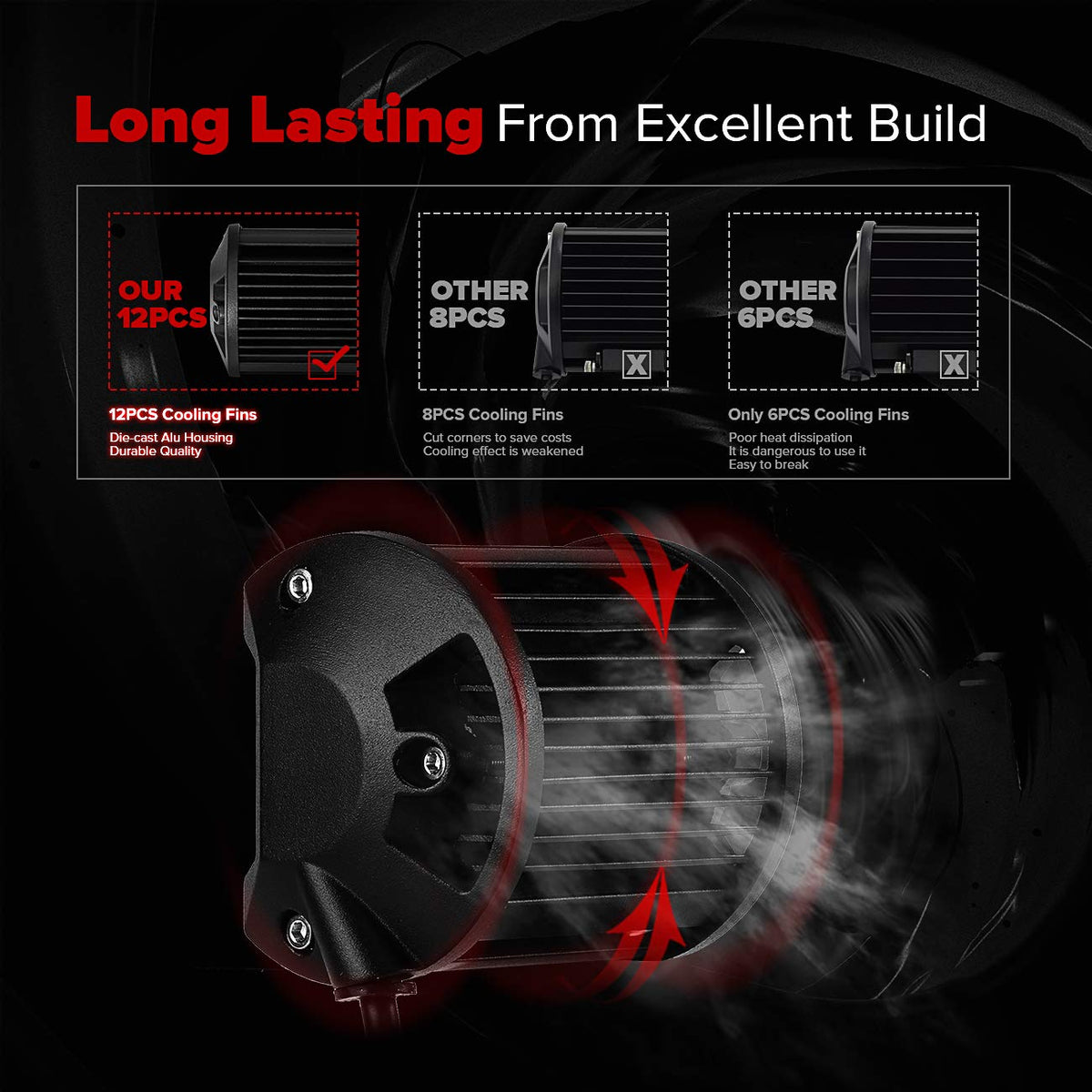 Q: What is the lifespan of the Chelhead LED light bars?A: These LED light bars have a working lifespan of up to 50,000 hours, ensuring long-lasting performance and reduced need for replacements, which is ideal for both recreational and professional use.