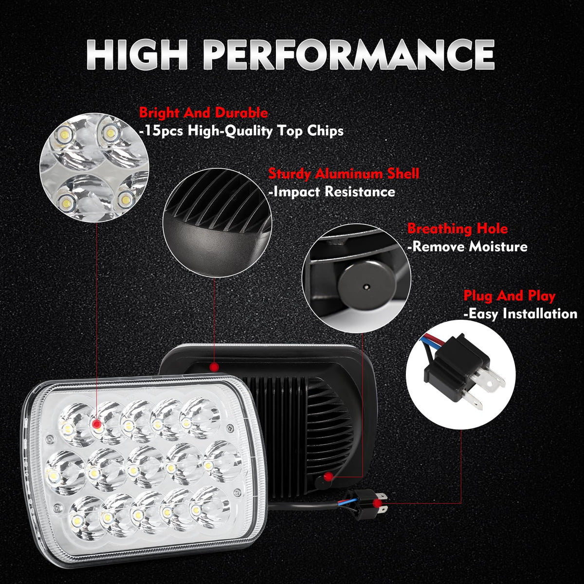 Aaiwa -- Professional Auto Accessaries Supplier Product Features & Specifications:Headlight Power: 45W LED Each 3W/PCVoltage: 12V DCLumens: 3150 LM/Hi, 1260 LM/LoHousing material: DIE-CAST AluminumLens material: PCWaterproof rate: IP68Plug type: H4Color temperature: 6000-6500KSize: 195mm*136mm*70mmLifespan: Up to 50,000 hoursPackage include:2PCS 45W 7X6 Inch Led HeadlightEasy installation. Only takes you 15 minutes to install with basic hand tools.