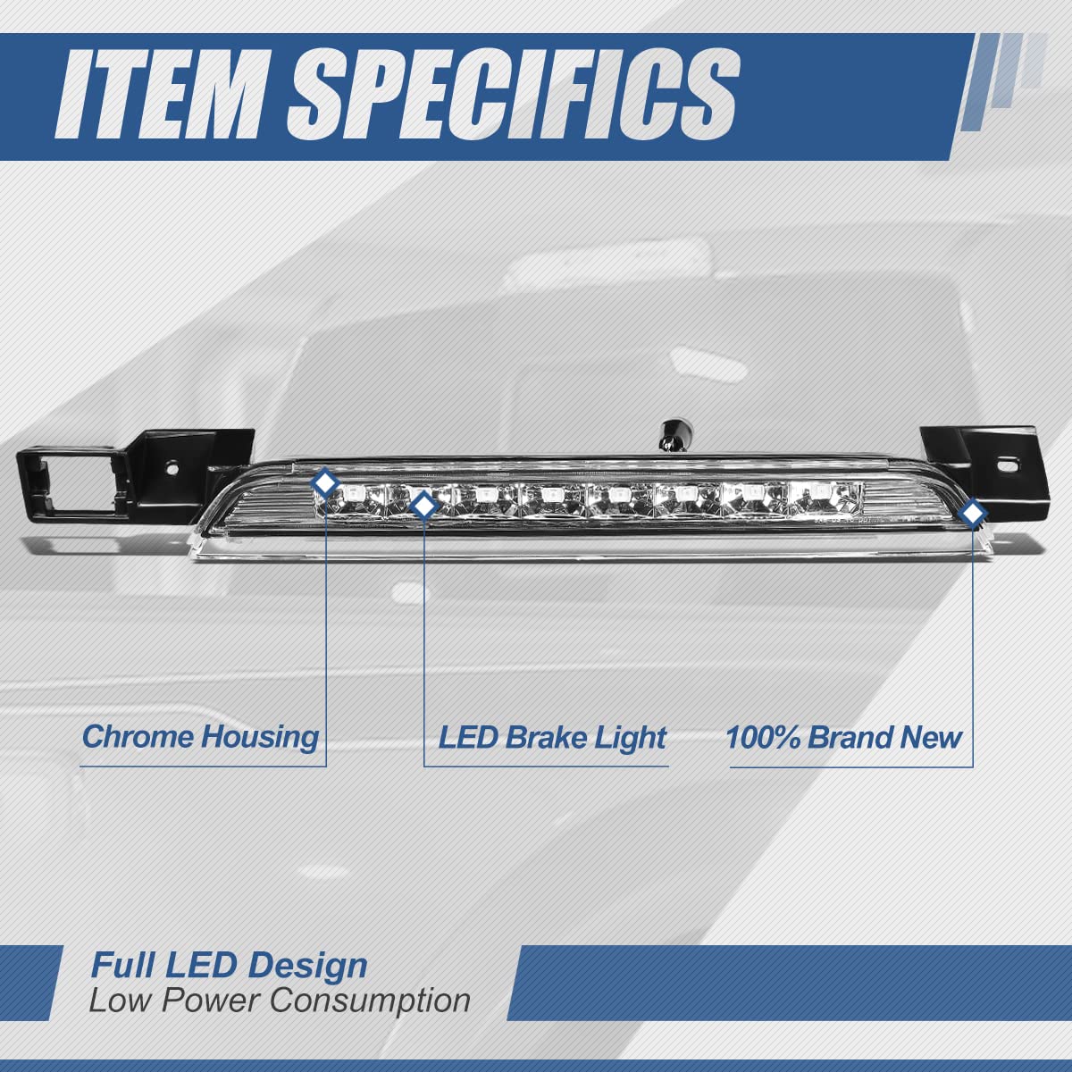 Q: How does the LED Third Brake Light improve visibility?A: The LED Third Brake Light features bright LEDs that shine up to ten times brighter than standard light bulbs, ensuring better visibility for drivers behind you when braking.