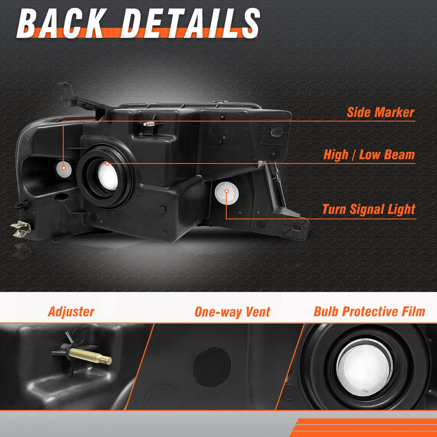 Q: What type of bulbs do I need for the AXLAHA Headlights Assembly?A: The AXLAHA Headlights Assembly requires H13 bulbs for the high and low beams, and 3157A bulbs for the turn signal light. Please be aware that bulbs are not included with the assembly.