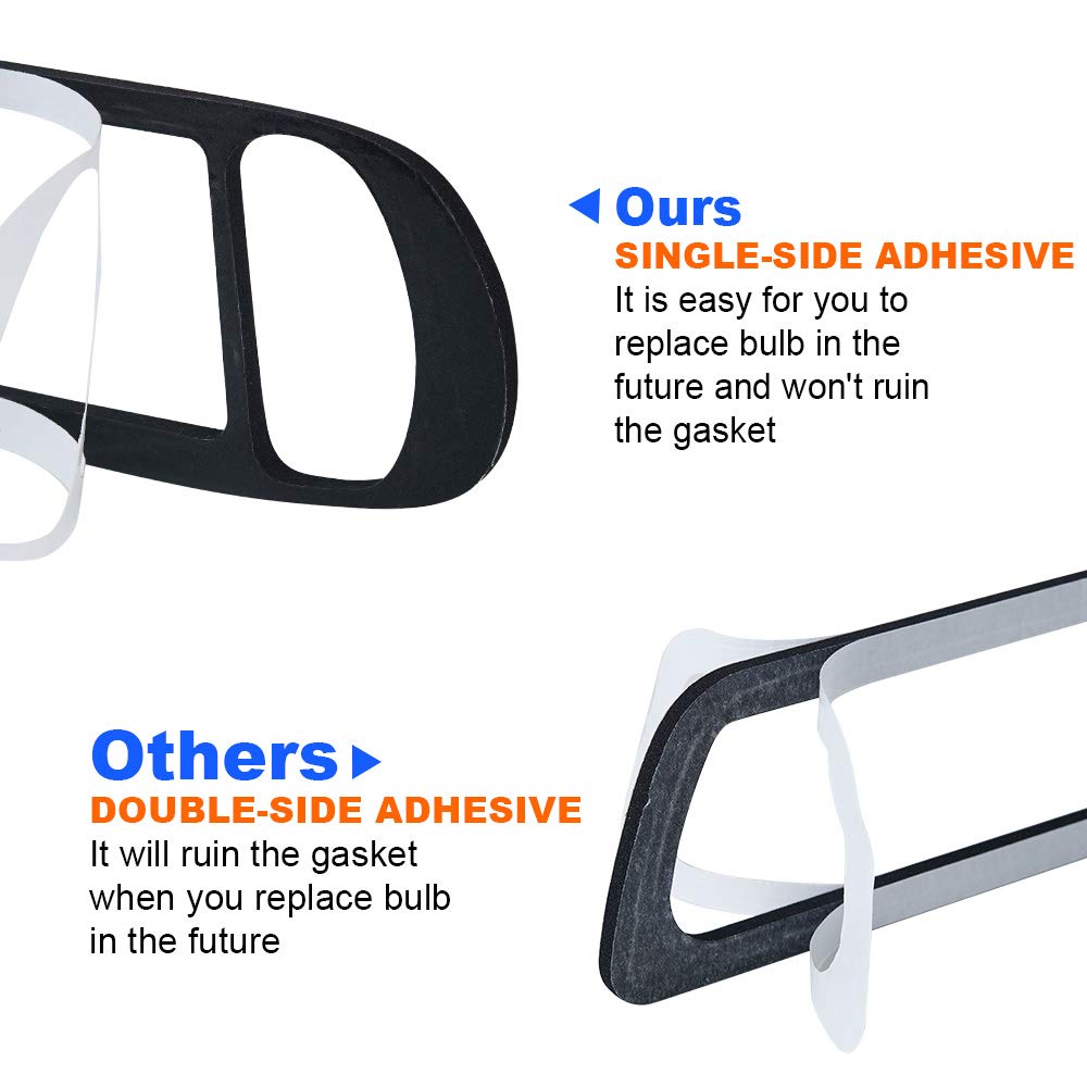 Q: Does the gasket leave any gaps when installed?A: Yes, the gasket may leave about one eighth inch gap outside between the housing edge and vehicle body after installation.