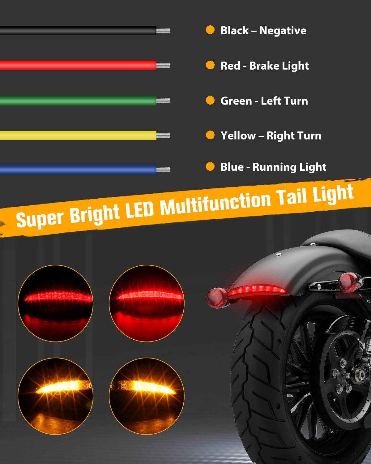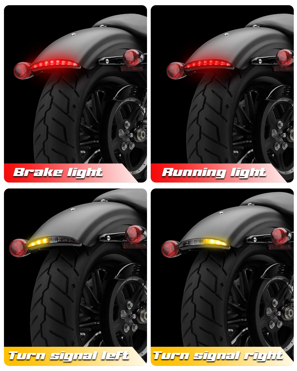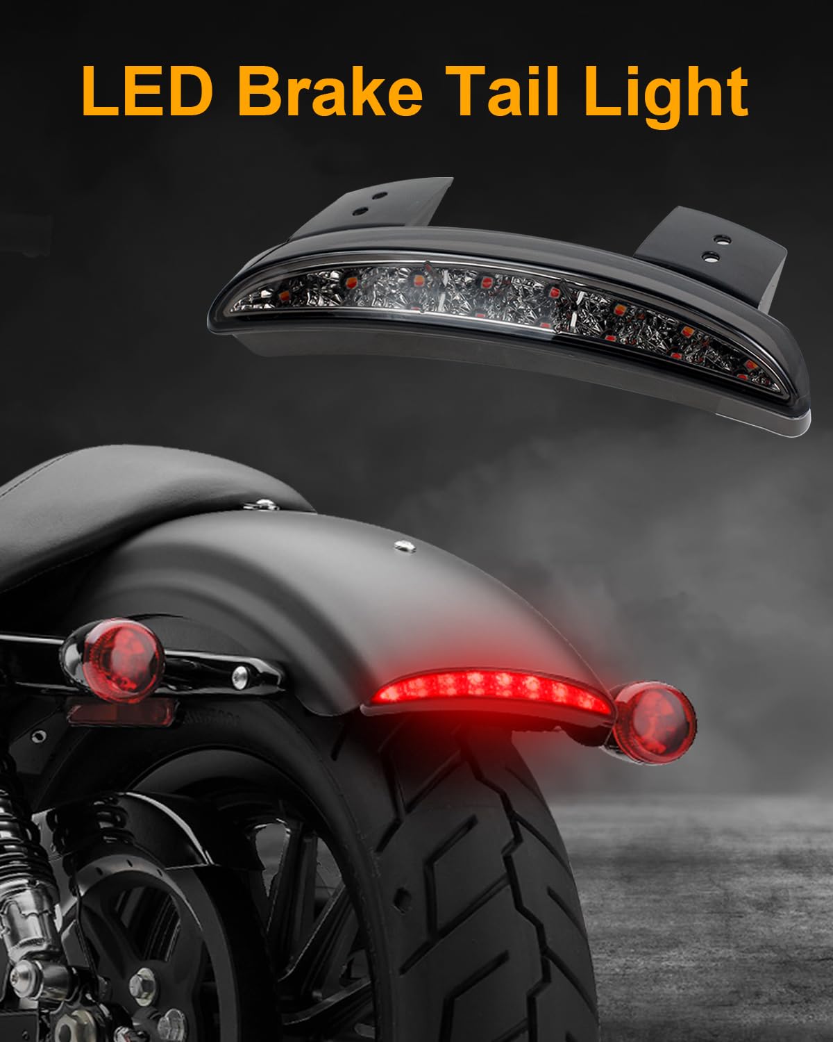 QUASCO Motorcycle Chopped Rear Fender Edge LED Brake Tail Light Turn Signals Taillight Compatible with Harley Sportster Iron 883