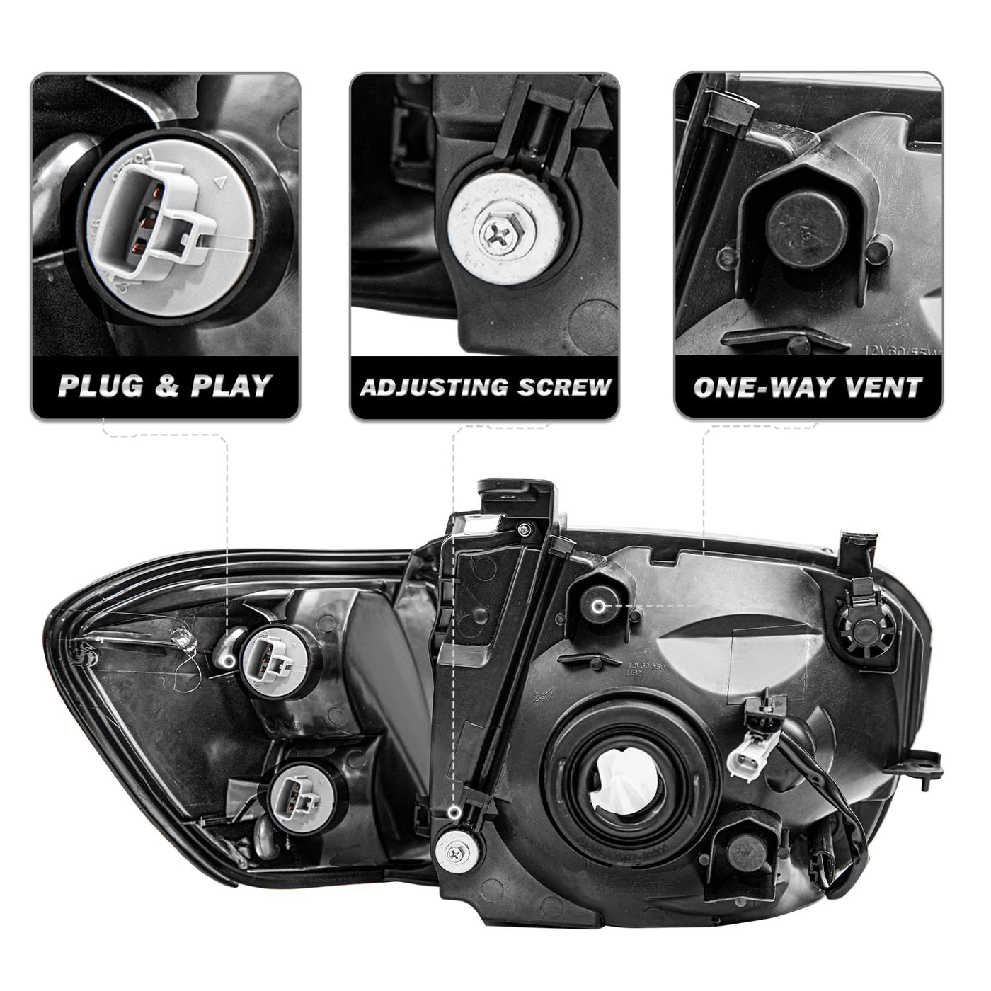 Sockir Headlight Assembly Compatible With 2005-2006 Toyota Tundra Double/Crew Cab & 2005-2007 Toyota Sequoia Passenger & Driver