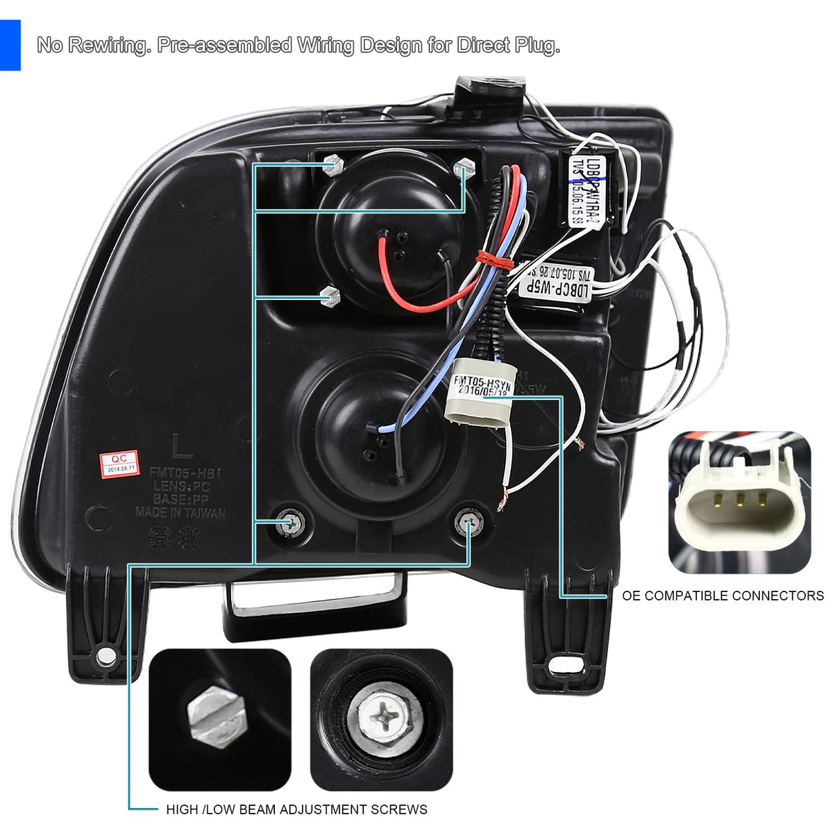 Q: Are these projector headlights compatible with all 2005-2009 Ford Mustang models?A: These projector headlights are compatible with all 2005-2009 Ford Mustang models, except for the Shelby GT500 models. Please ensure your vehicle matches these specifications for proper fitment.