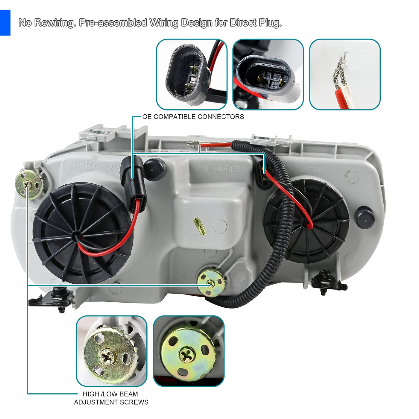 Q: Do these headlights require any modifications for installation?A: No modifications are needed for installation. The headlights are a direct bolt-on replacement, making it easy to install without any wiring changes.