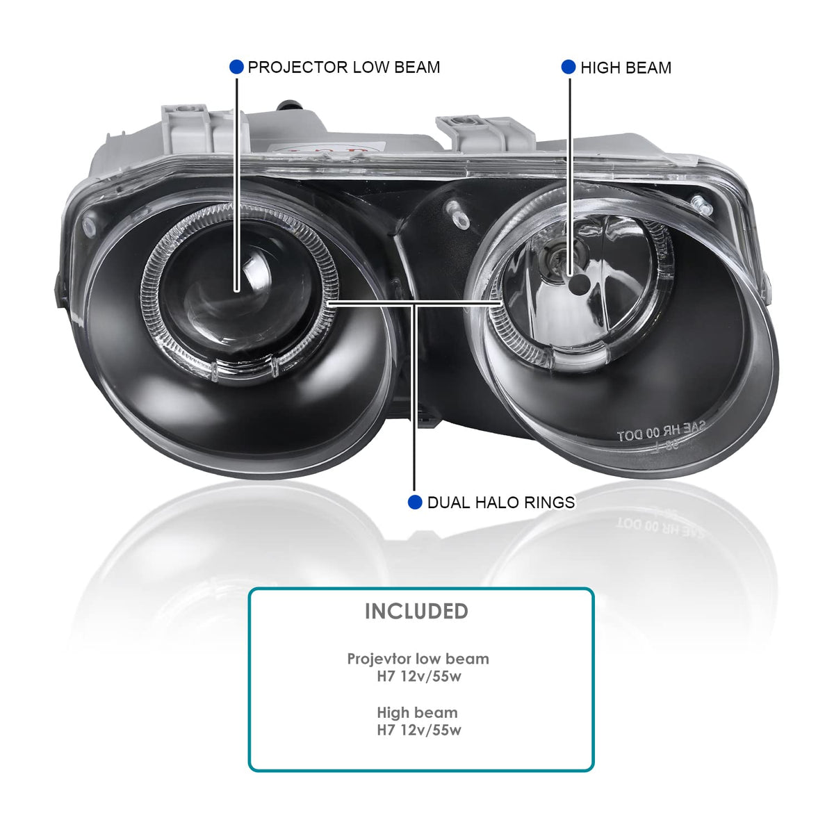 Q: How can I ensure the longevity of my Spec-D Tuning Halo Black Projector Headlights?A: To ensure longevity, keep the headlights clean and free from debris, and avoid using harsh chemicals. The fully sealed design protects against water and UV damage.