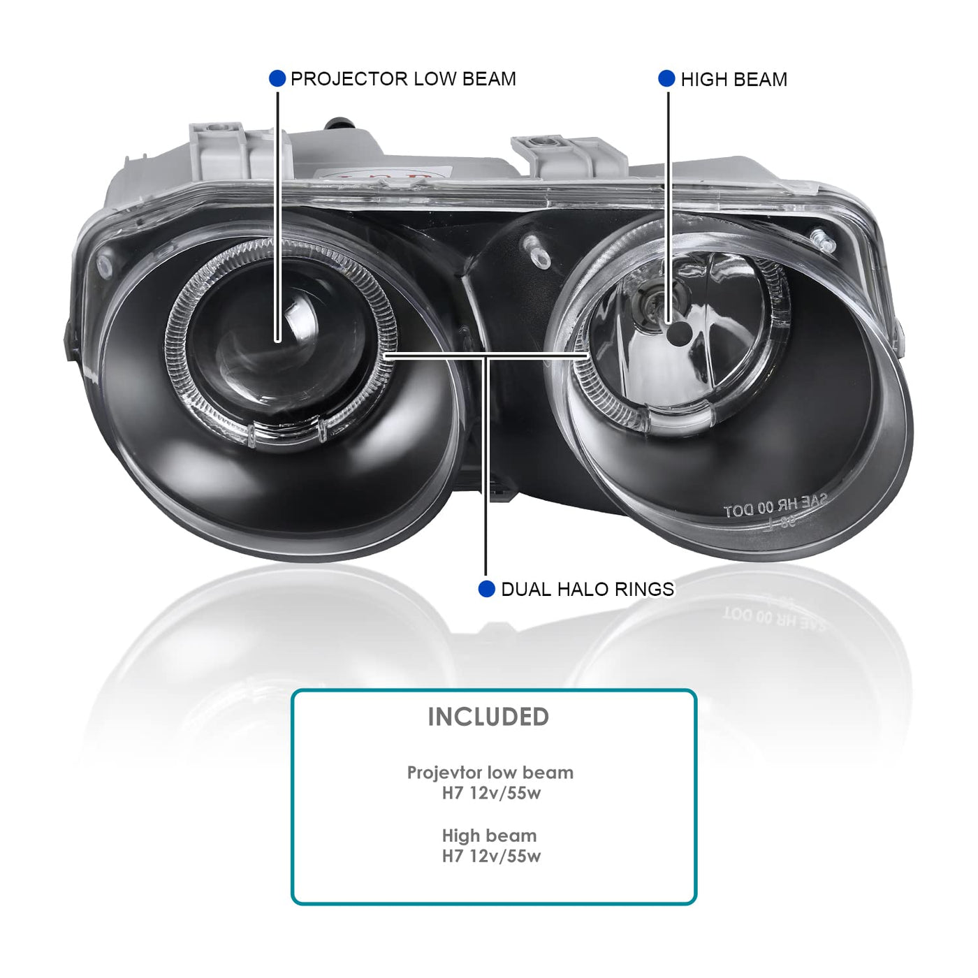 Q: What are the benefits of using projector headlights compared to traditional headlights?A: Projector headlights, like these Spec-D Tuning options, provide a more focused beam of light, improving visibility on the road while reducing glare for oncoming drivers.