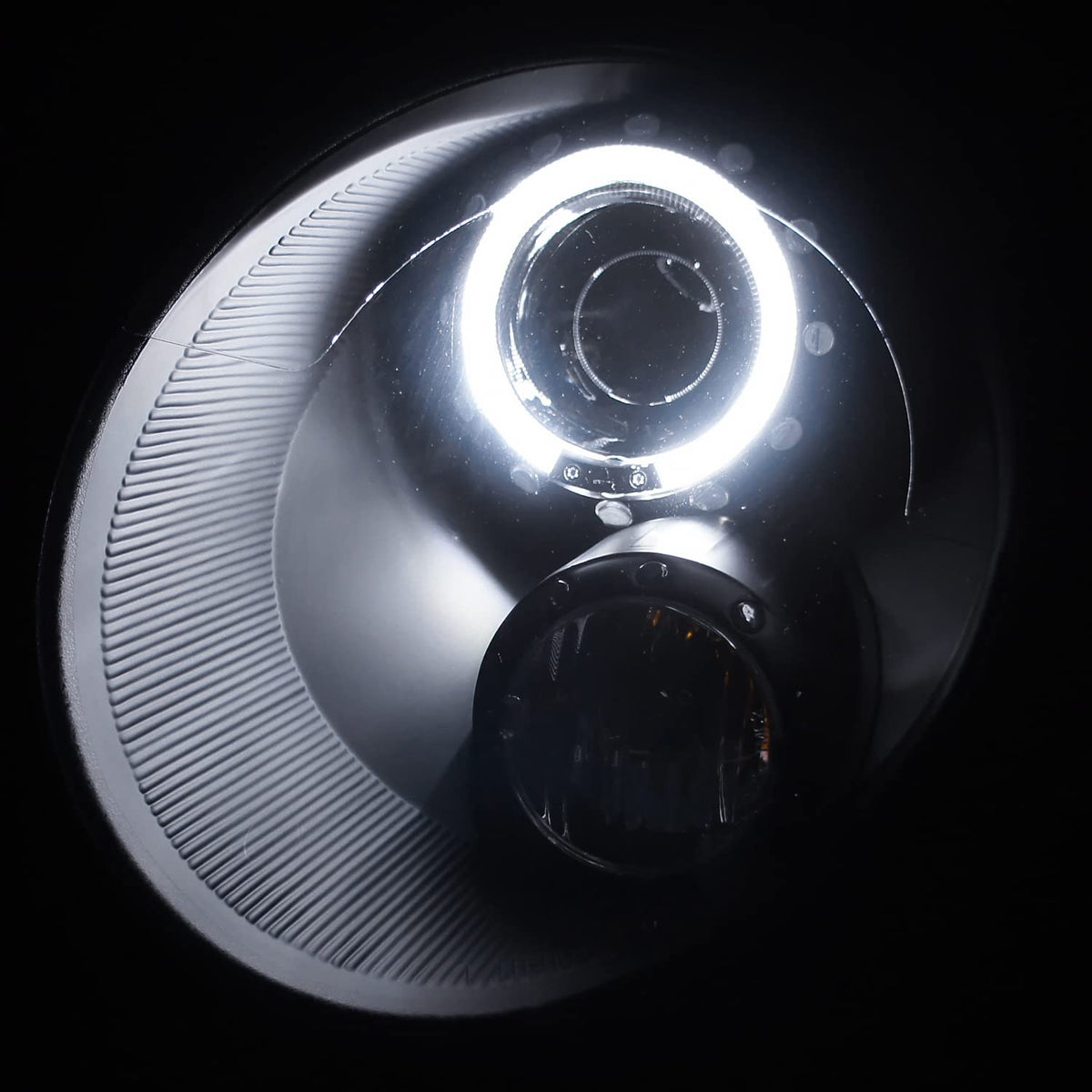 Spec-D Tuning Halo Ring Black Projector Headlights Compatible with 2007-2013 R56 MINI Cooper Models Left + Right Pair Headlamps