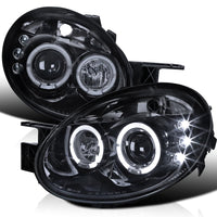 Spec-D Tuning LED Dual Halo Projector Smoked Lens Headlights Glossy Black Housing Compatible with 2003-2005 Dodge Neon Left + Ri