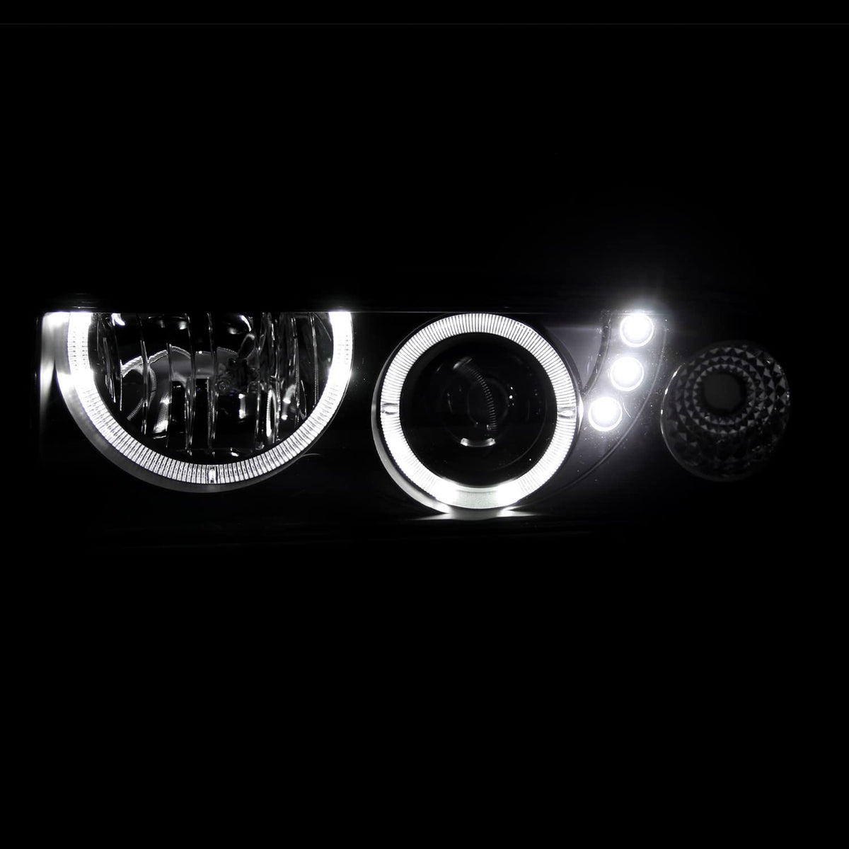 Spec-D Tuning Smd Led Dual Halo Projector Headlights Black Compatible With 1998-2004 Chevy S10 Pickup, 1998-2004 Chevy S10 Blaze