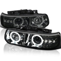 Spec-D Tuning Smoke Halo Led Projector Headlights Compatible With 1999-2002 Chevy Silverado, 2000-2006 Chevy Suburban, 2000-2006