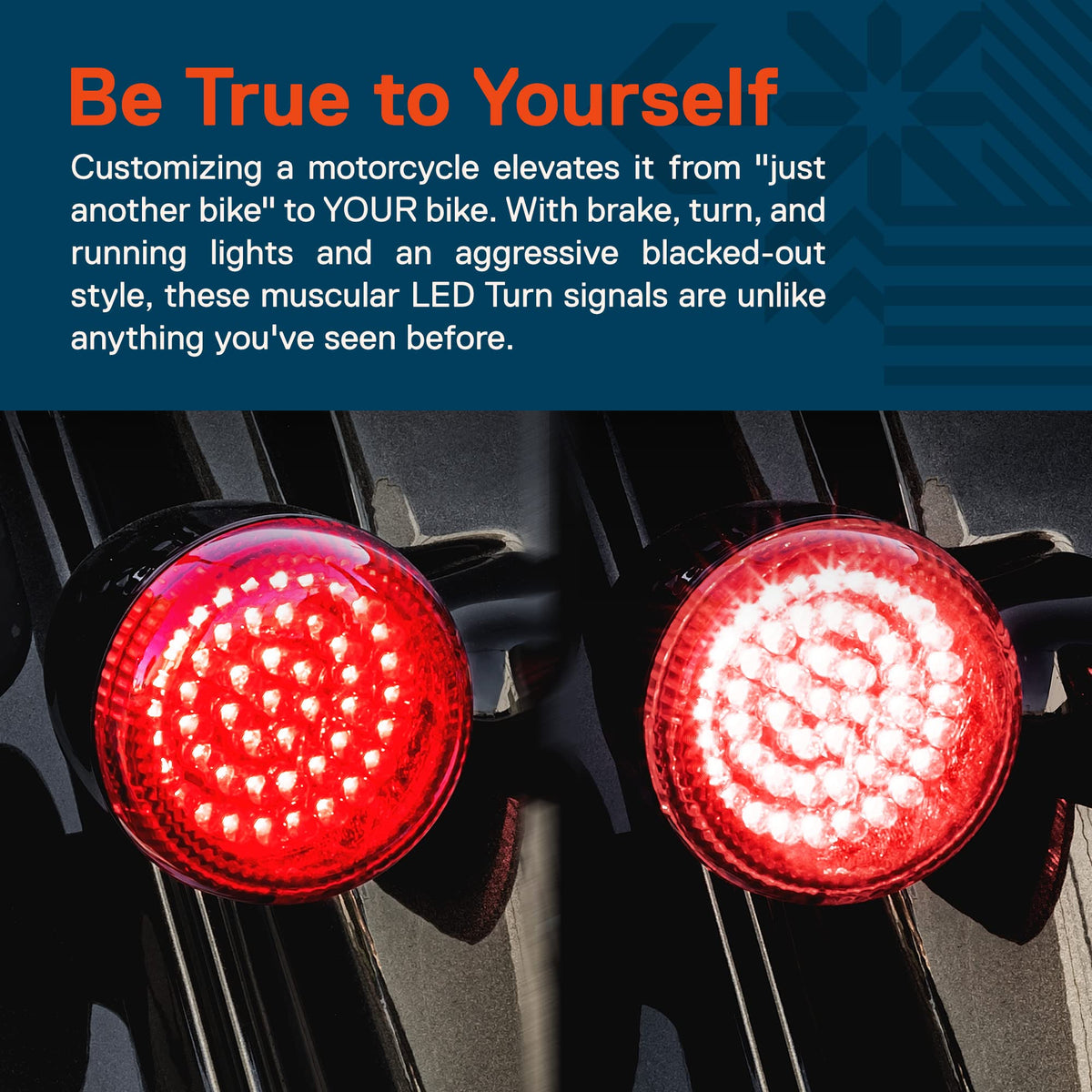 True Mods 2'' 1157 Rear Red Led Turn Signal Tail Brake Light For Harley Davidson [Pair Set] [Black-Finish] [Bullet Style] For Sp
