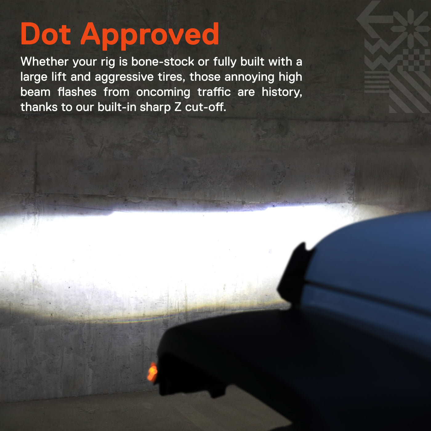 Q: What are the key features of these LED headlights?A: The TRUE MODS headlights feature a patent-pending design, custom textured Halo DRLs, dedicated turn signals, and a sharp Z cut-off for DOT approval, ensuring both style and safety.