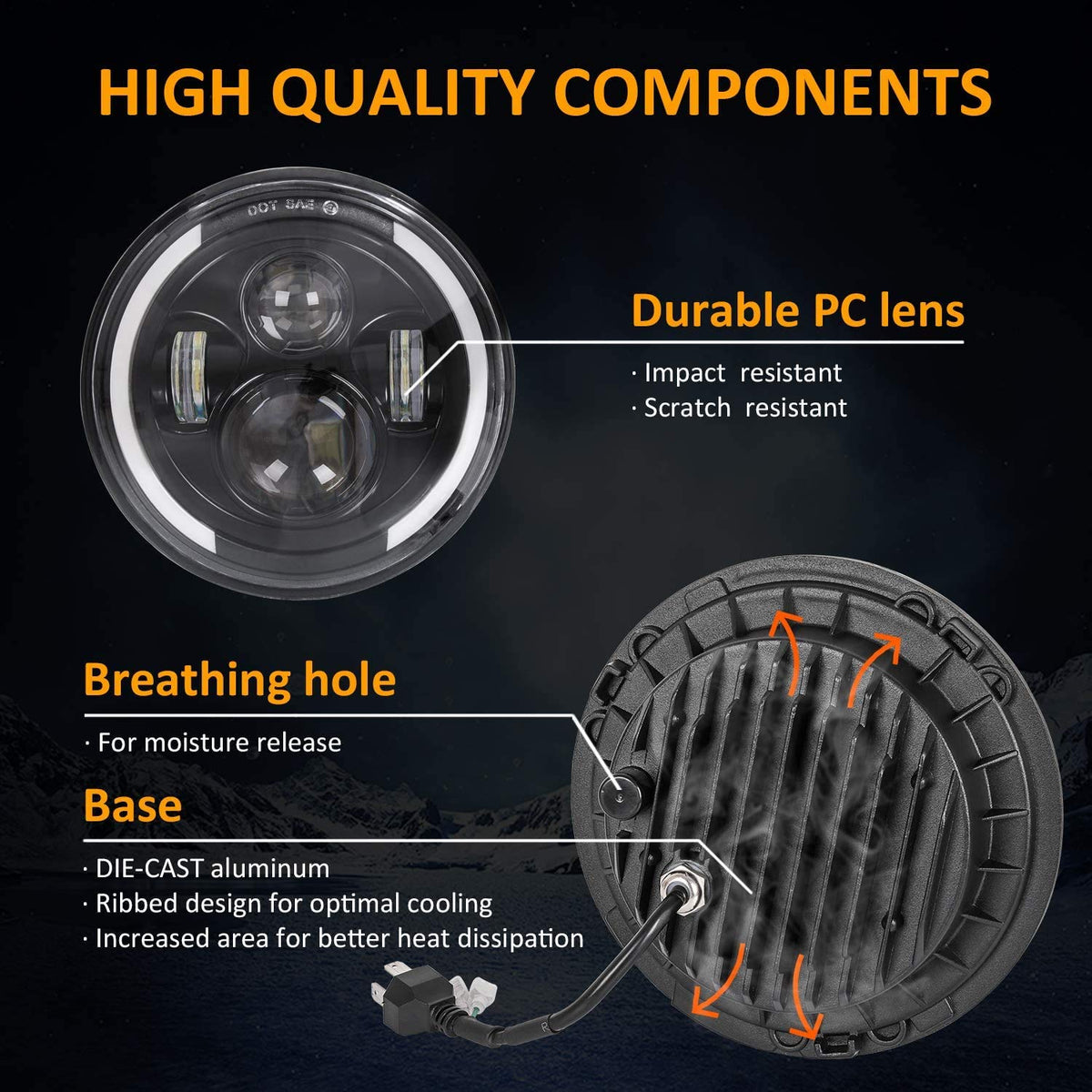 High-Quality Headlight: Made from aluminum alloy die-casting for exceptional durability and performance.