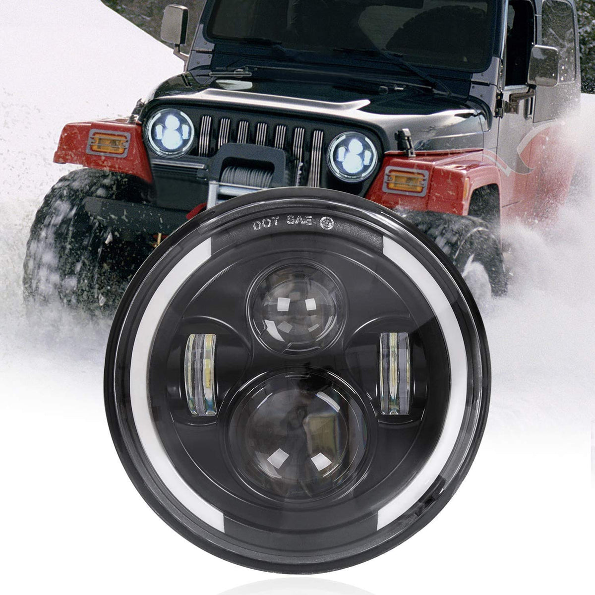 Zmoon 7 LED Motorcycle Headlight with Hi/Low Beam & Amber/White Turn Signal, DOT Approved for Harley-Davidson, Jeep Wrangler, Hummer