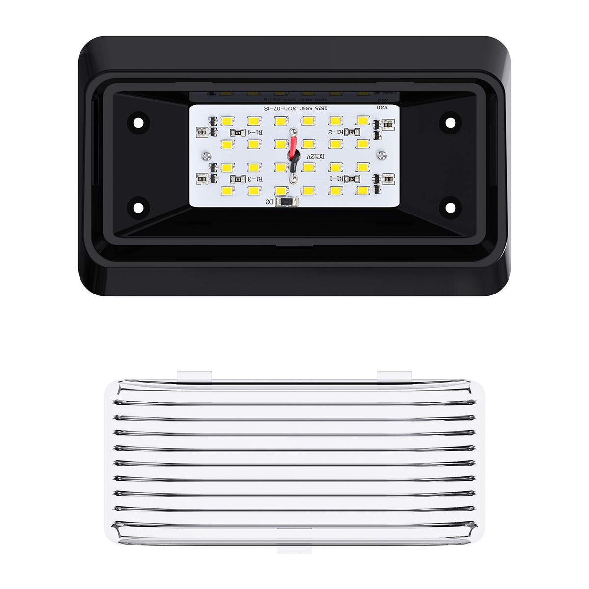 New LED Rectangle Porch Light Without Switch 280LUM Cool White Description: LED Rectangle Porch Light Fixture 280 Lumens Made with Environment-friendly technology and materials. Wide Voltage Range : 11-18 volts Applications include 12 Volts DC recreational vehicles. RV fluctuations can damage a regular LED. This LED is designed to withstand a wide operating voltage range. Beam pattern : 120 degrees Color Temperature : 6000-6500K Cool White 24 High power 2835 LEDs. 2.7 Power Watts 60,000 hour life expectancy. Last many times longer than standard light bulb