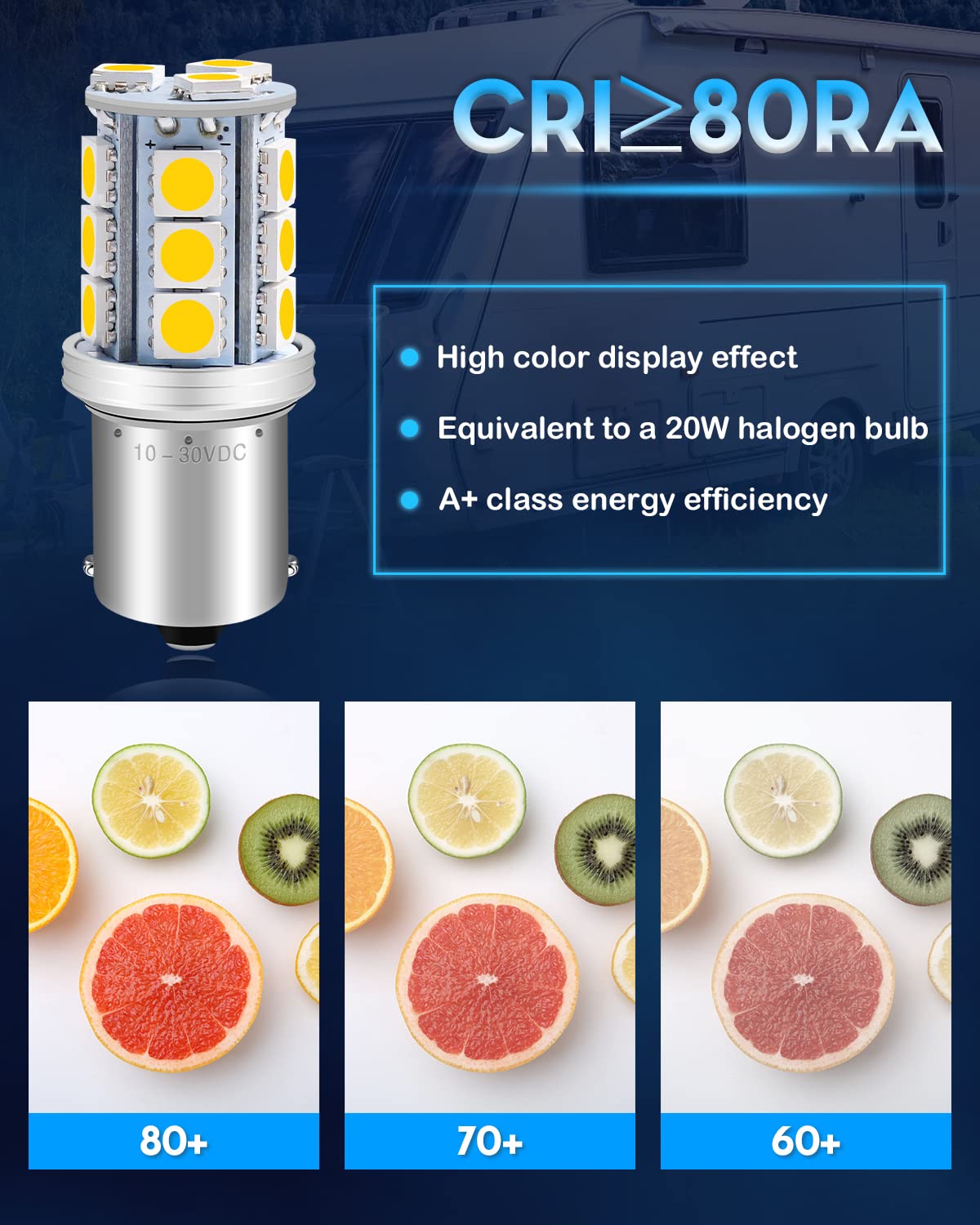 Qoope 1156 1141 Led Bulb 10V-30V Ac/Dc Super Bright Warm White 1073 7506 Ba15S Replacement Bulbs For Rv Camper Travel Trailer Ma